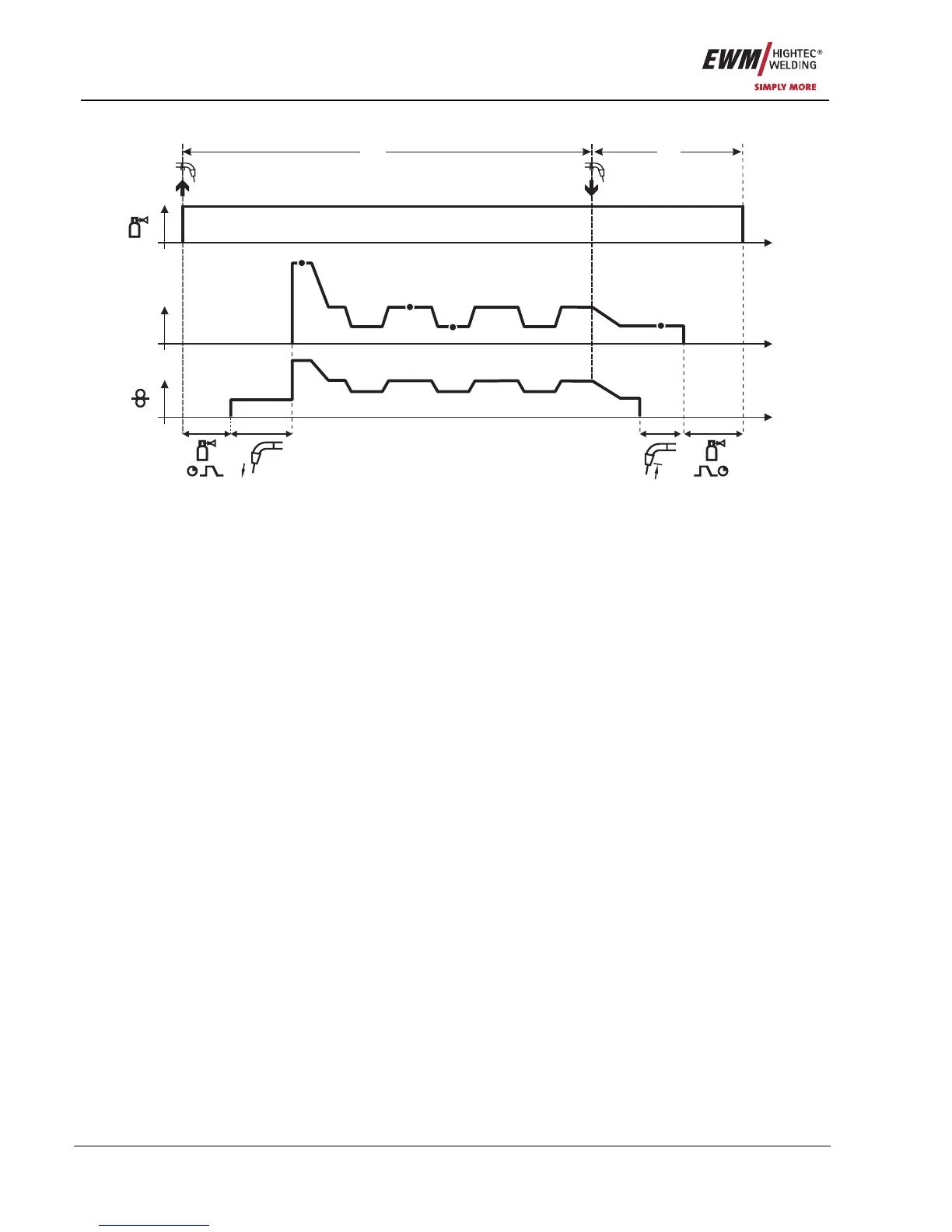 • Arc ignites after the wire electrode makes contact with the workpiece, welding current is flowing (start
