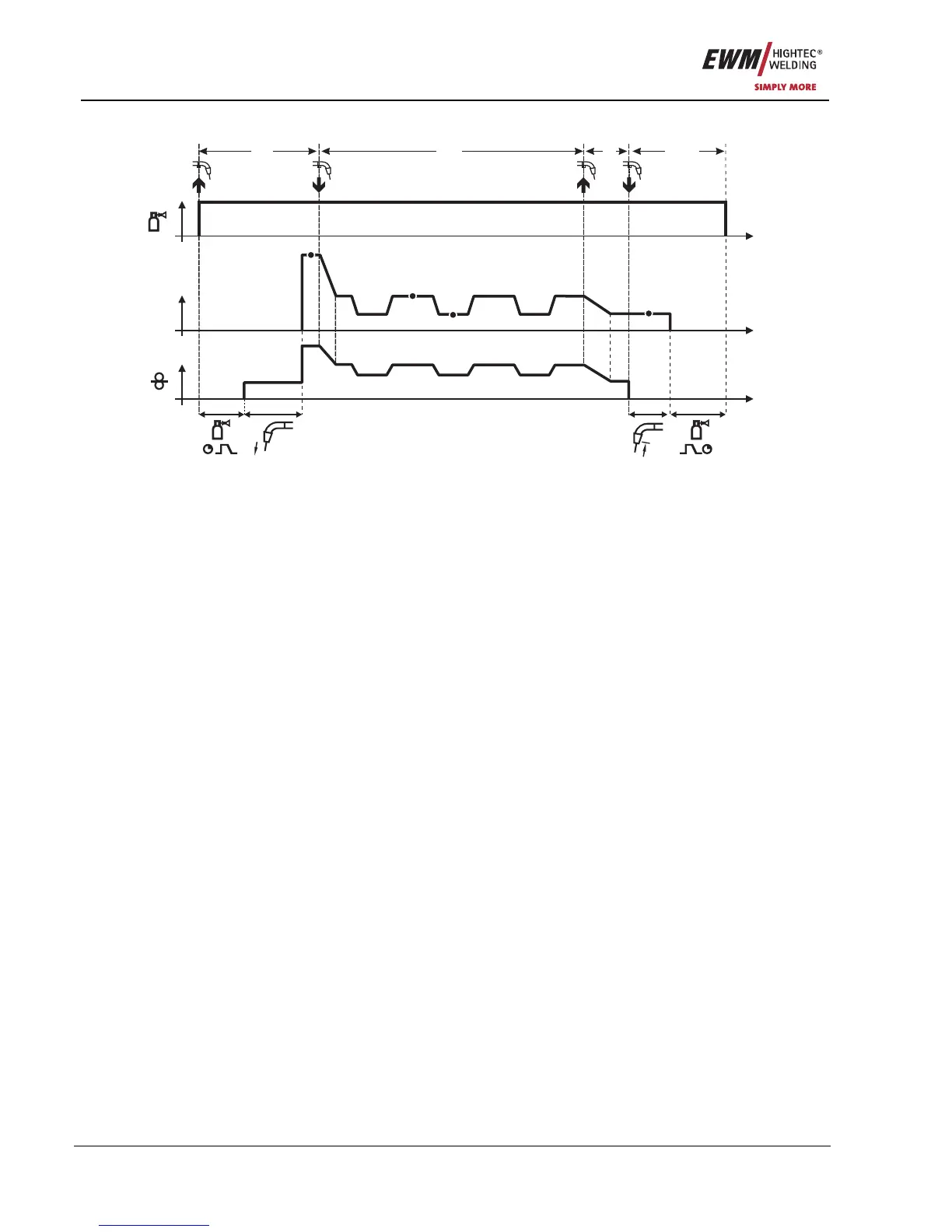• Arc ignites after the wire electrode makes contact with the workpiece, welding current is flowing (start