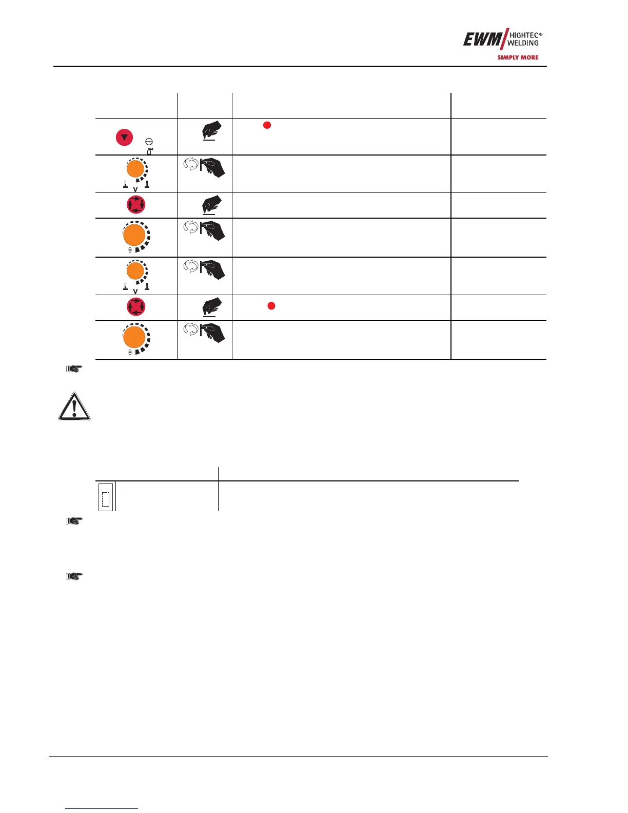 Changes to the welding parameters can only be made when the key switch is in position "1".