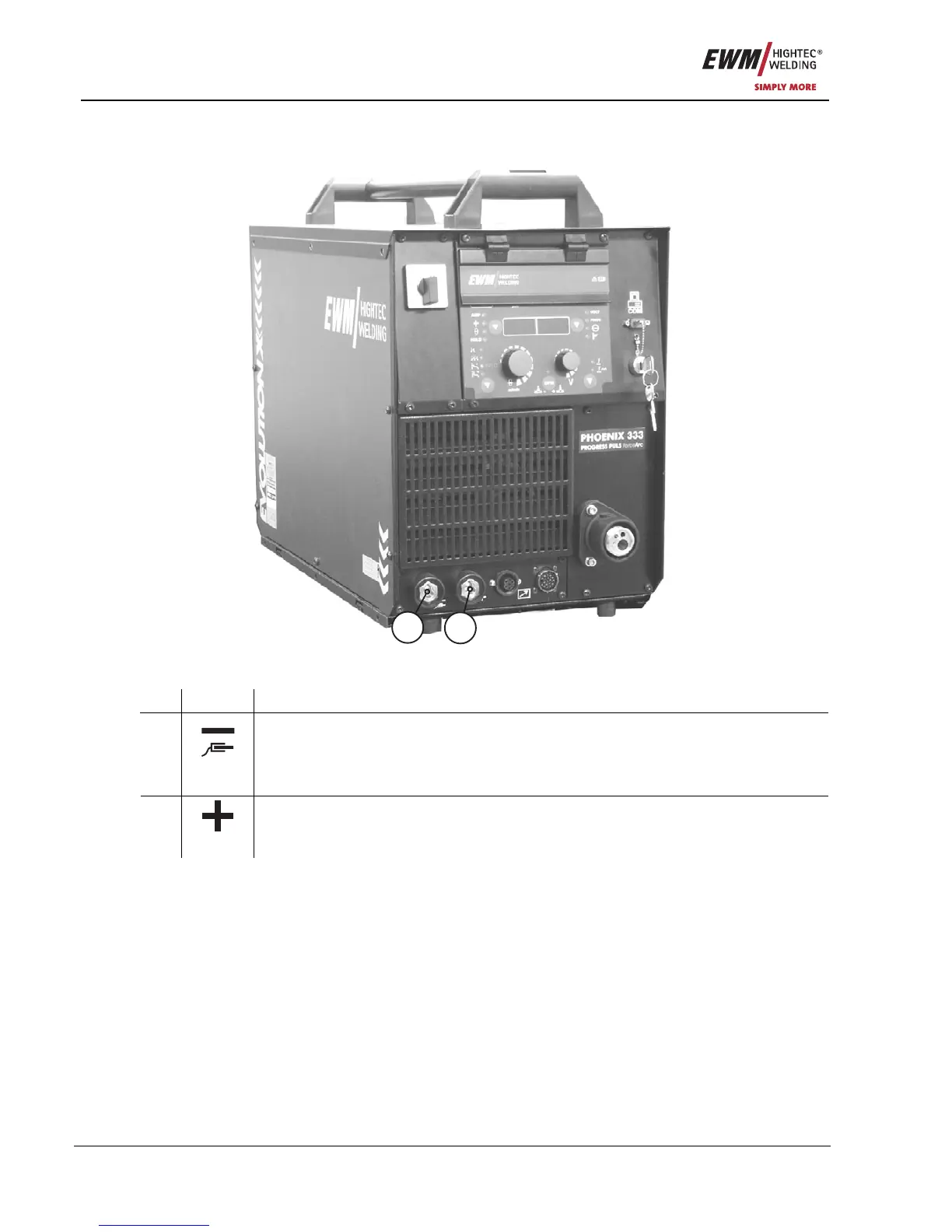 • Insert cable plug on the workpiece lead into the "-" welding current socket and lock by turning to the
