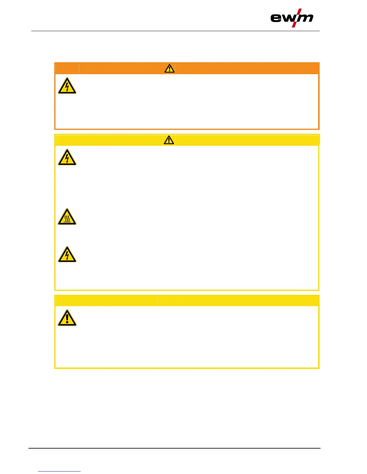 Contact with live parts, e.g. welding current sockets, is potentially fatal!