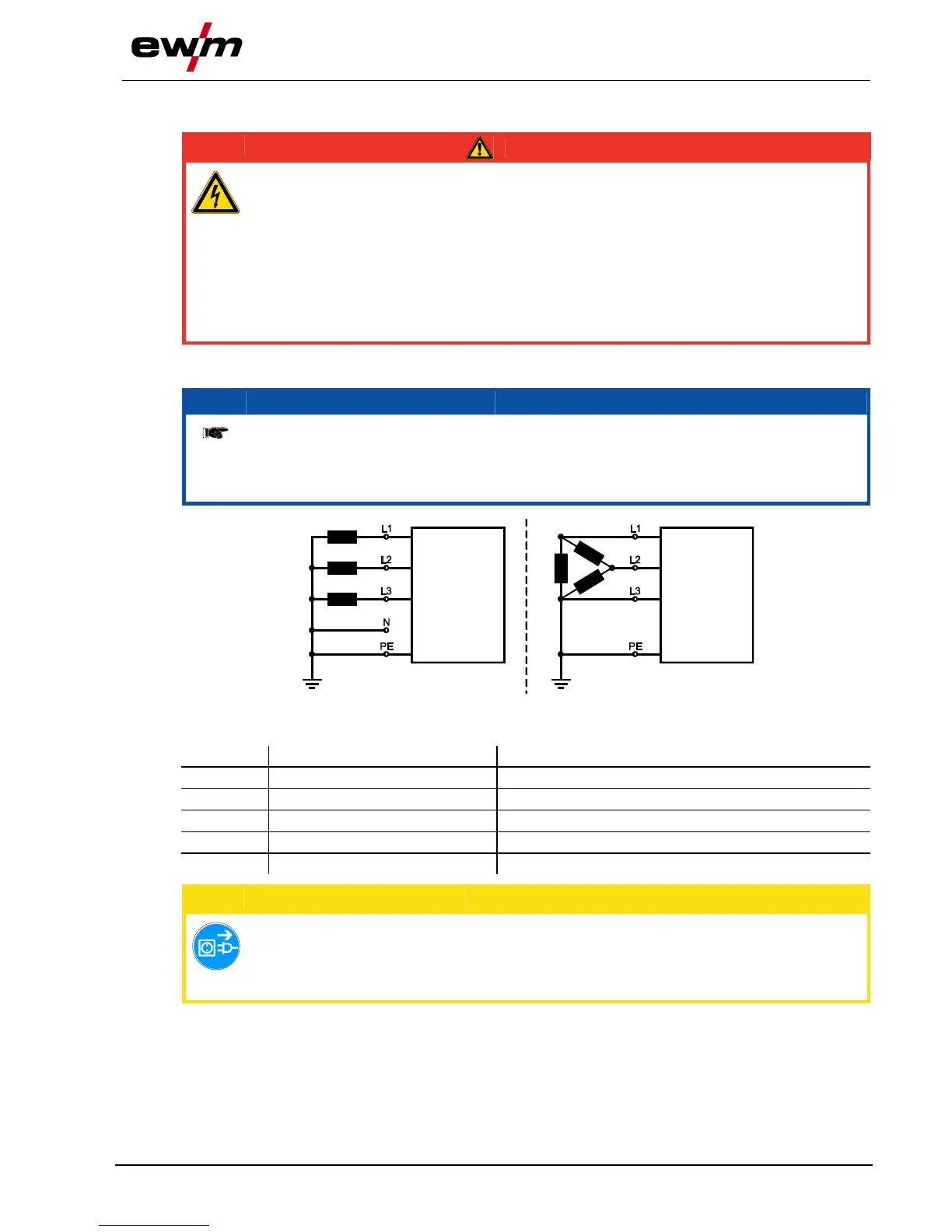 Hazard caused by improper mains connection!
