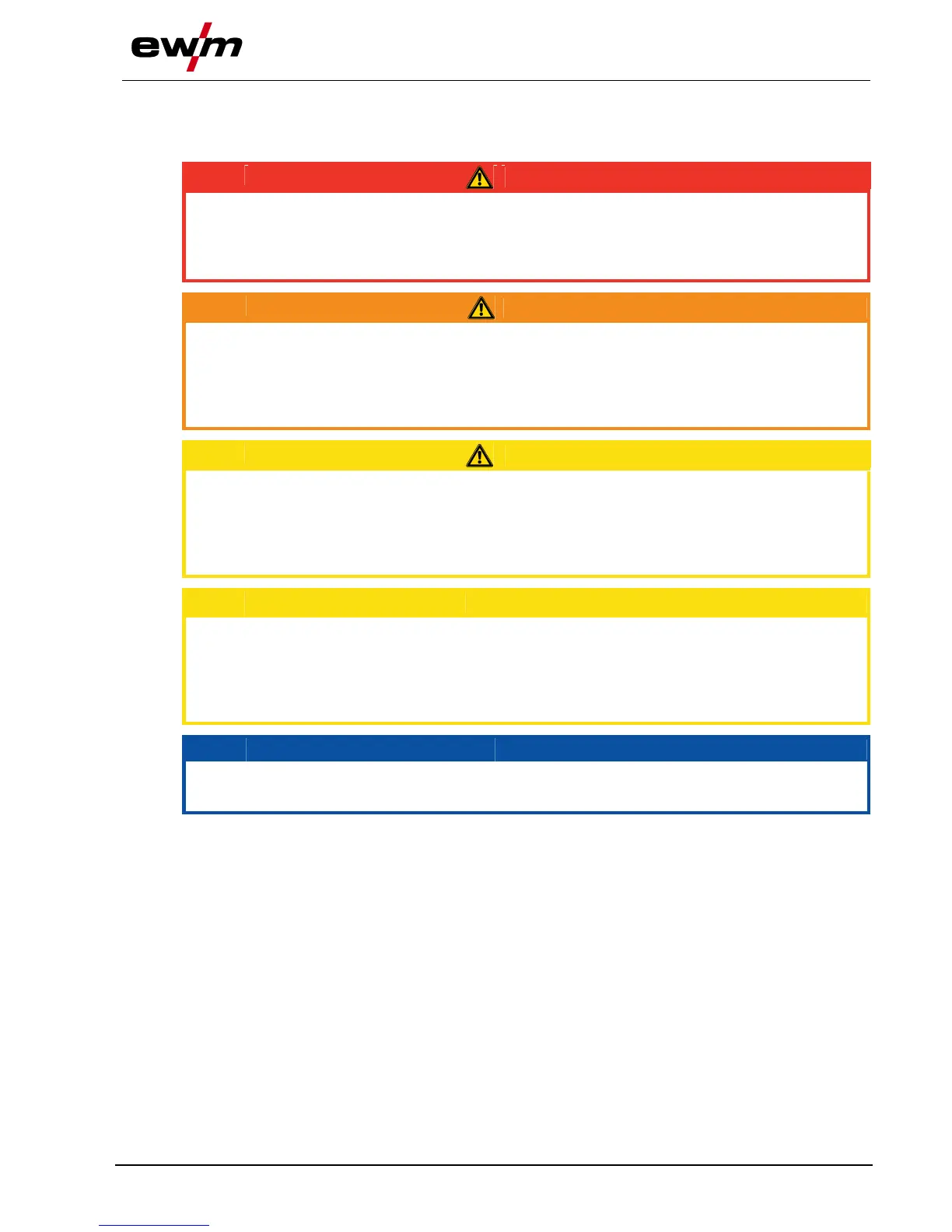• Safety notes include the "WARNING" keyword in the heading with a general warning