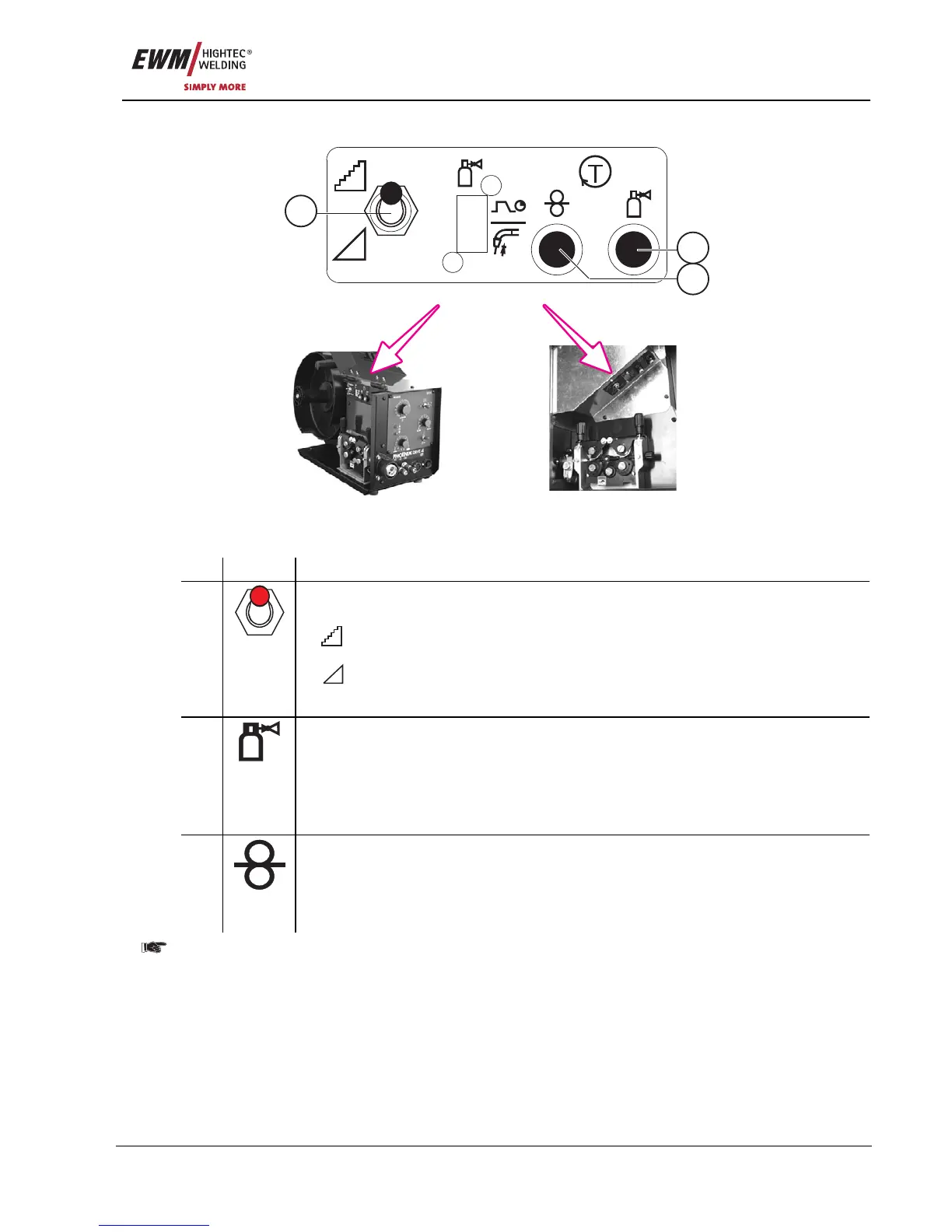 Pressing the key button once causes shielding gas to flow for approx. 25 seconds. The