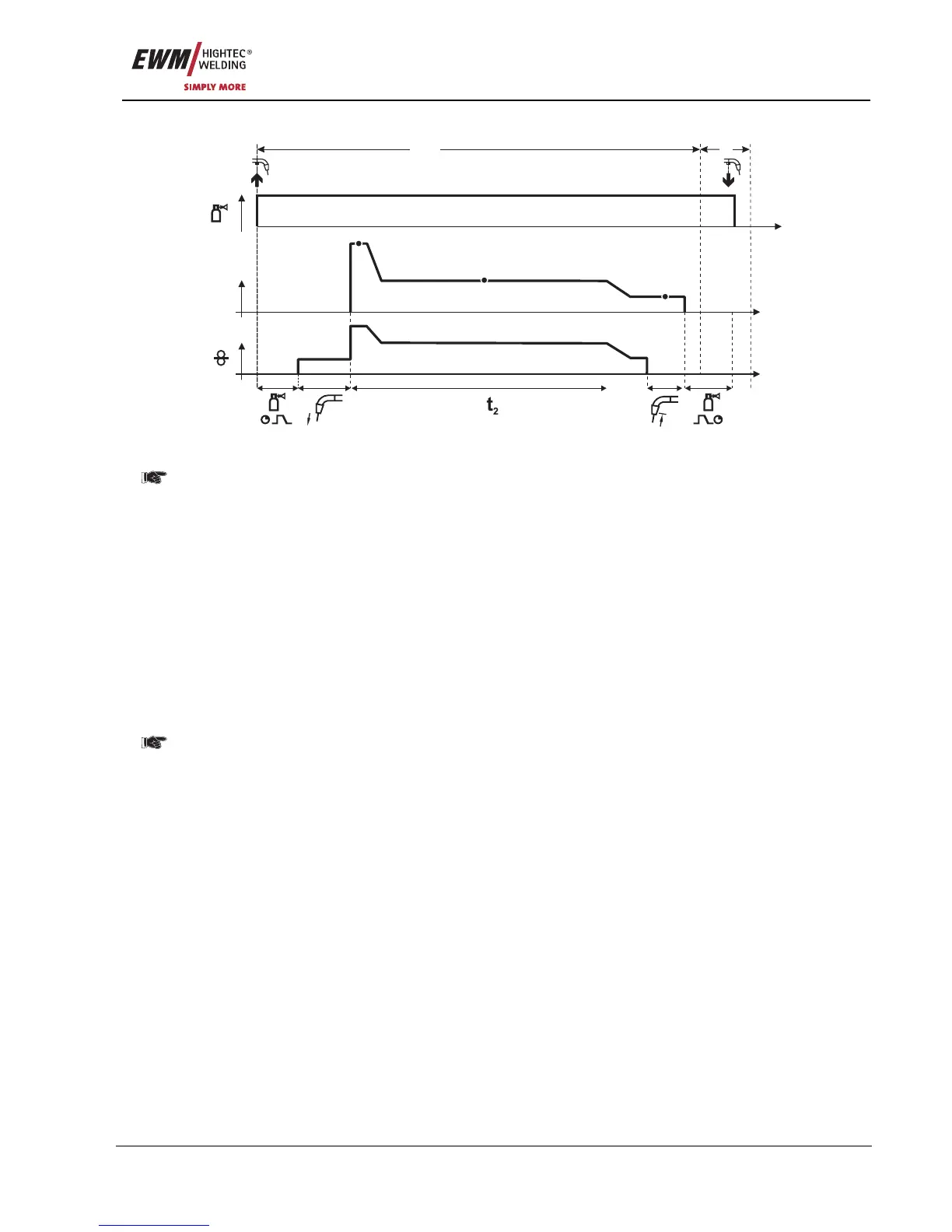• Arc ignites after the wire electrode makes contact with the workpiece, welding current is flowing (start