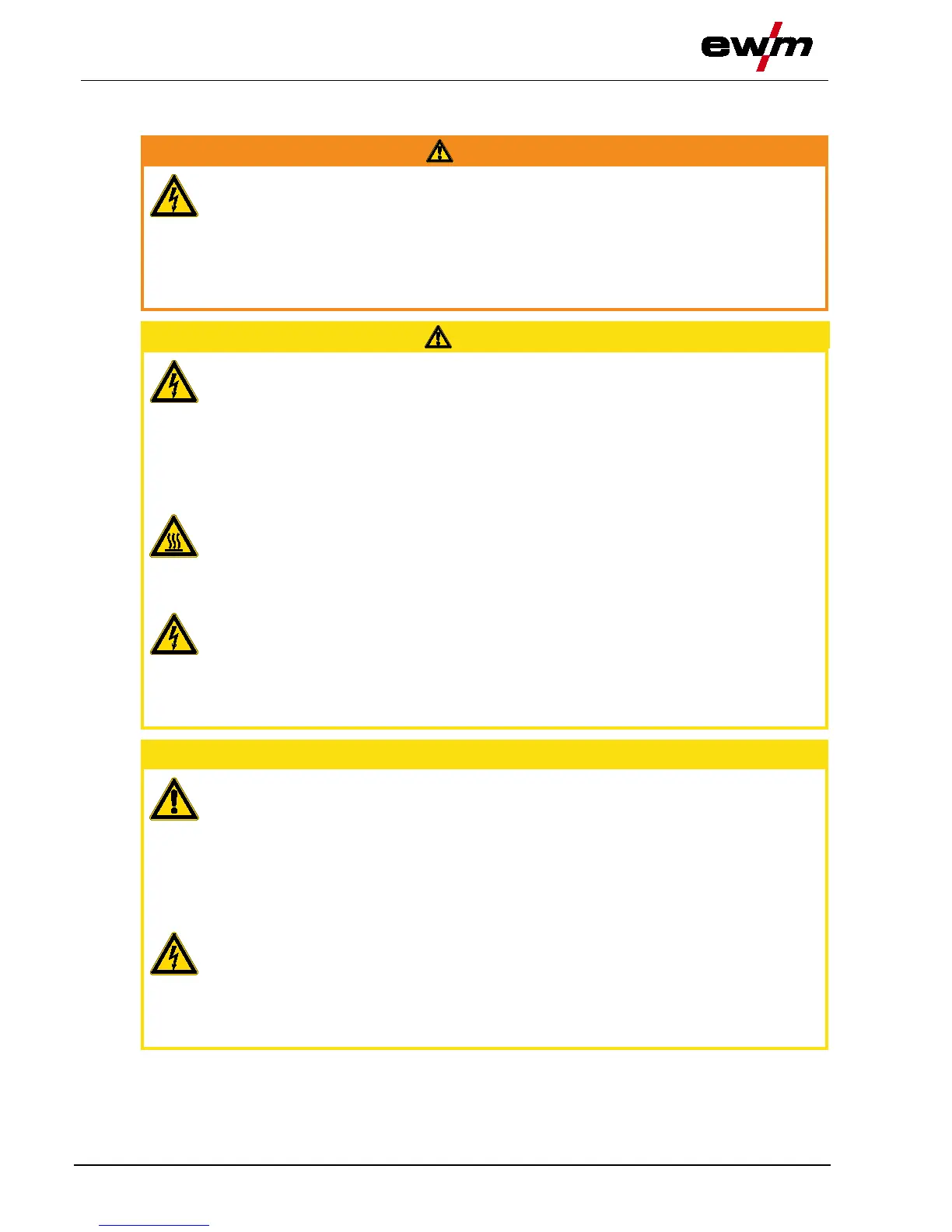Contact with live parts, e.g. welding current sockets, is potentially fatal!