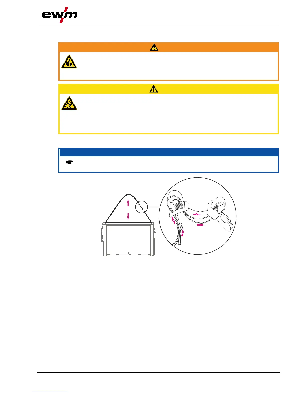 • The machine may not be lifted by crane or suspended!
