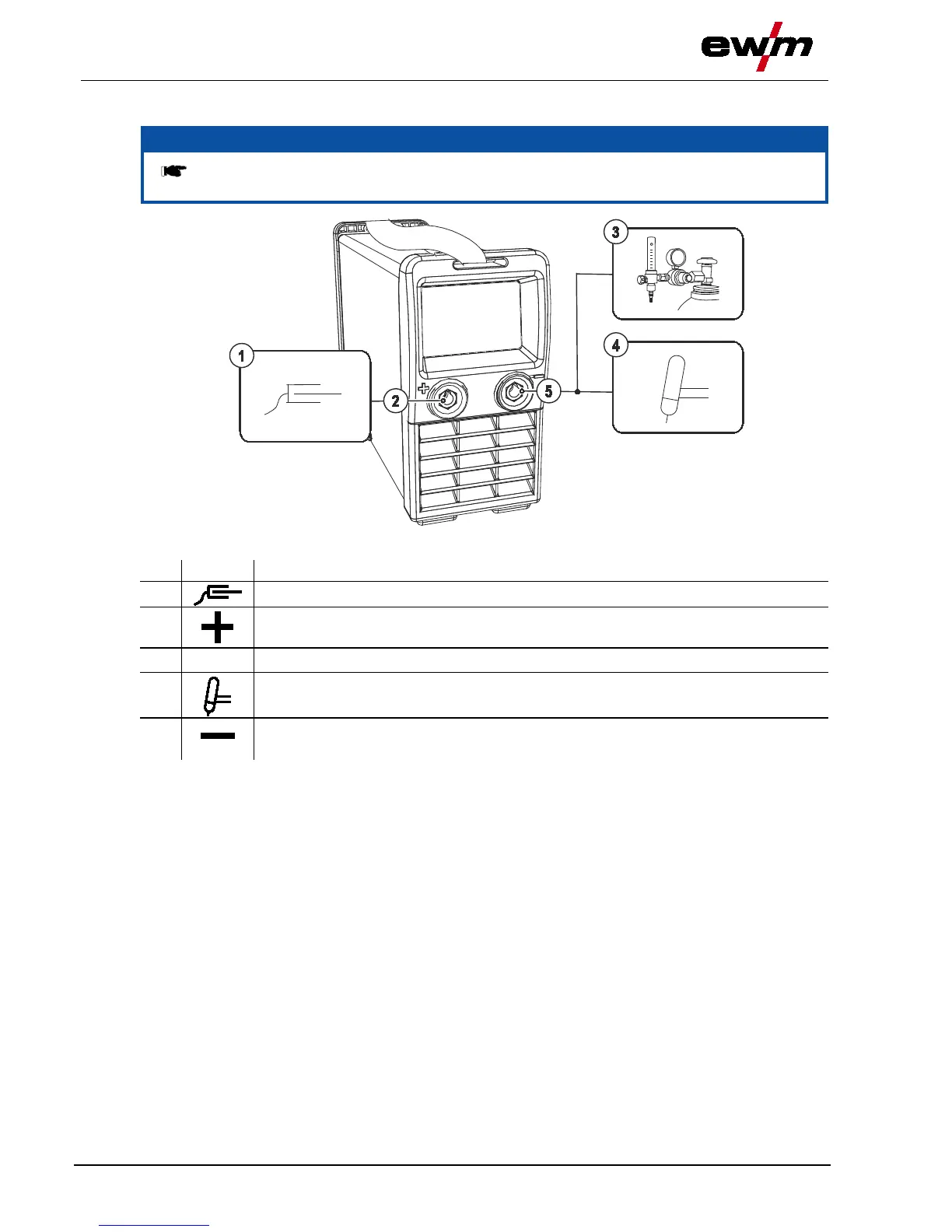 Prepare welding torch according to the welding task in hand (see operating instructions