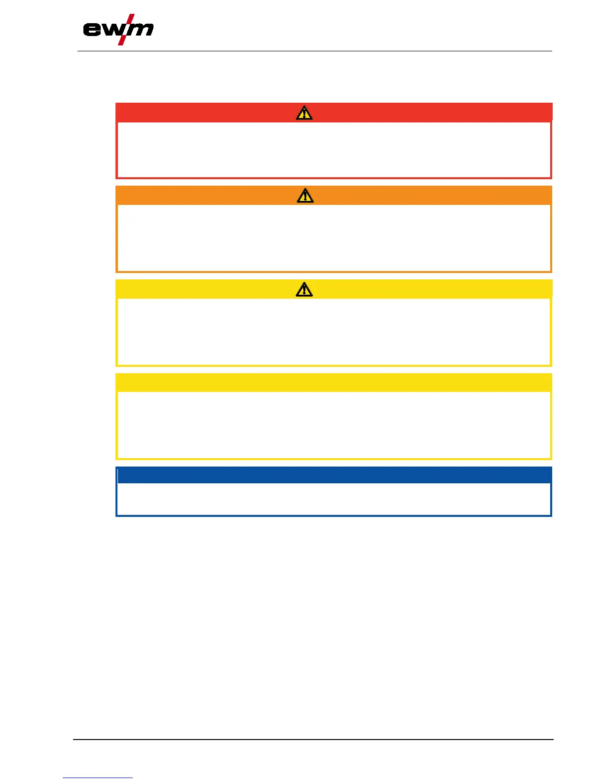 • Safety notes include the "WARNING" keyword in the heading with a general warning