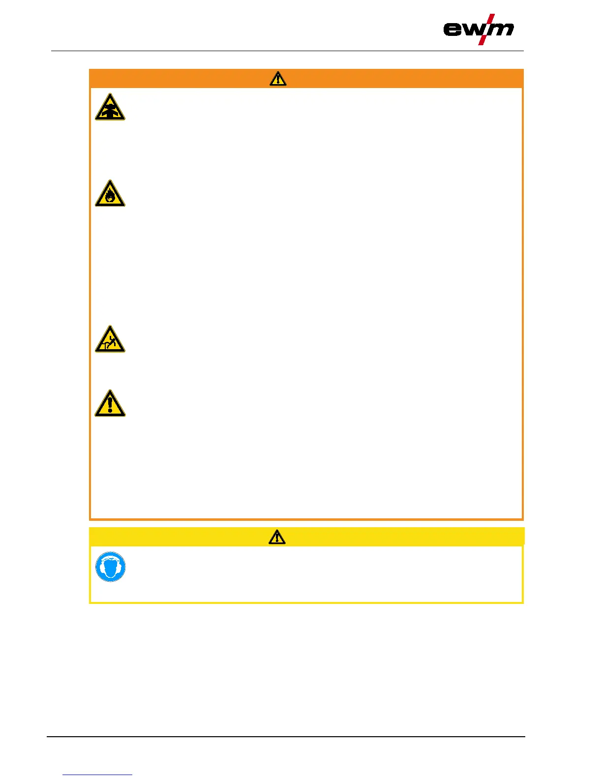 • Keep appropriate fire extinguishing equipment to hand in the working area!