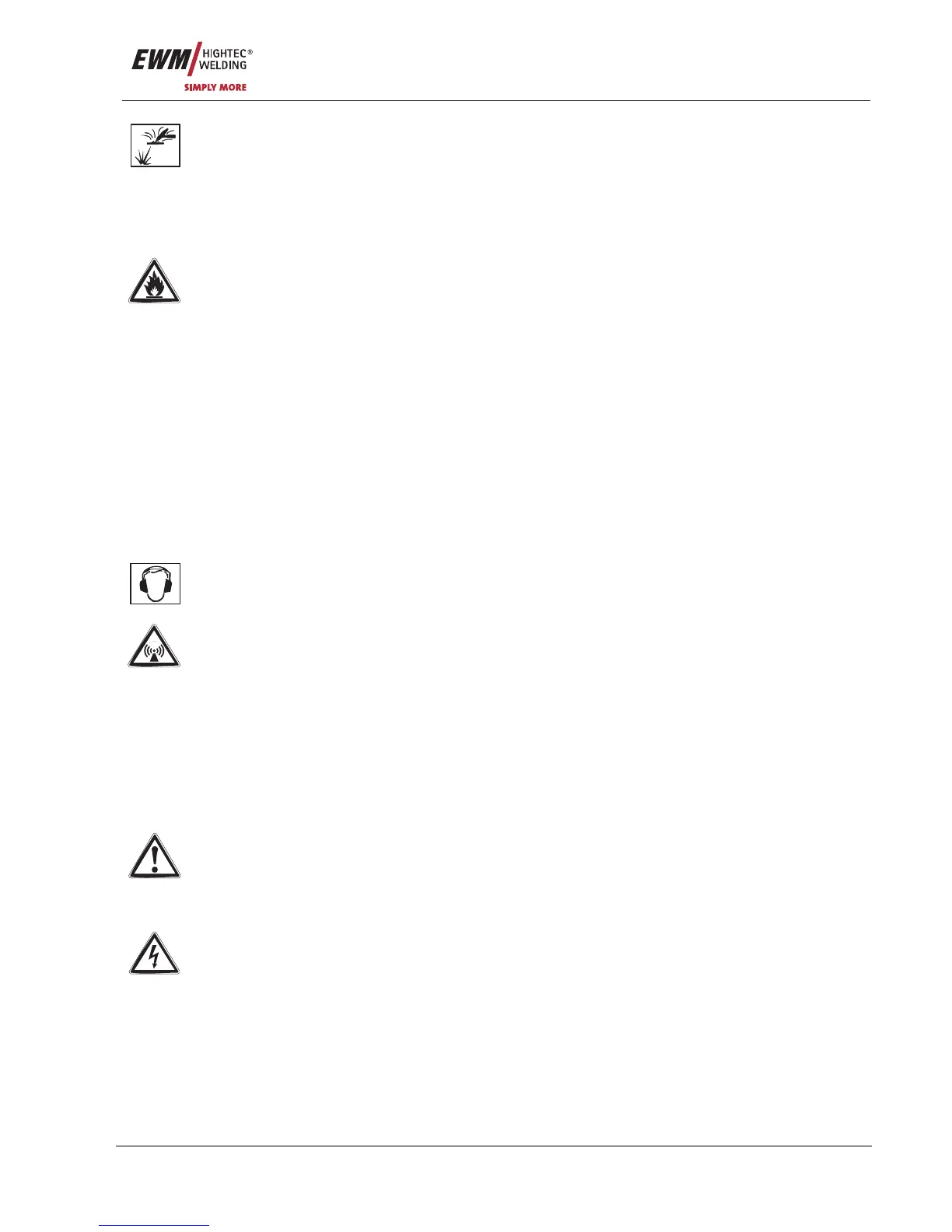 • Any kind of fire hazards must be avoided. Flames can form e.g. when sparks are flying, when parts