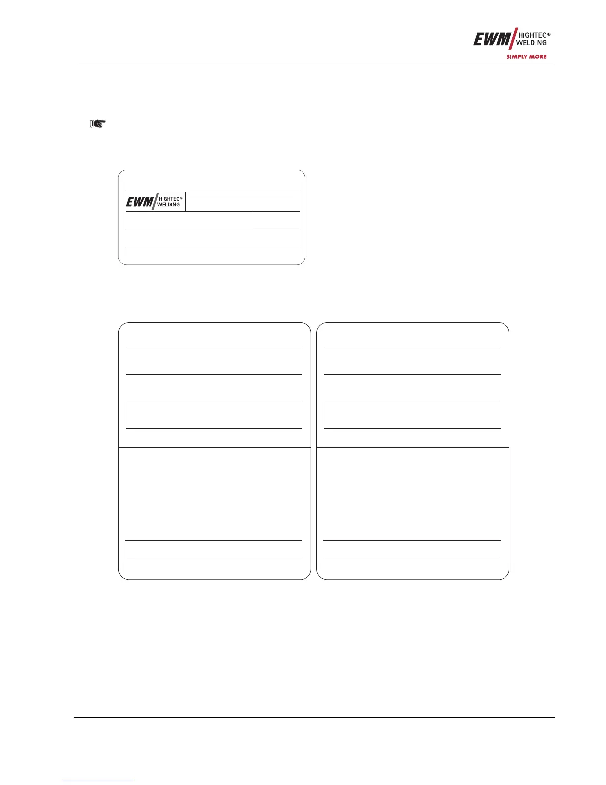 Please enter the EWM machine data and your company’s data in the appropriate fields.