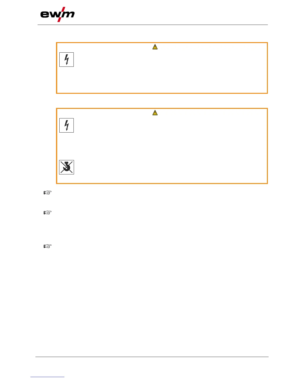 Contact with live parts, e.g. welding current sockets, is potentially fatal!