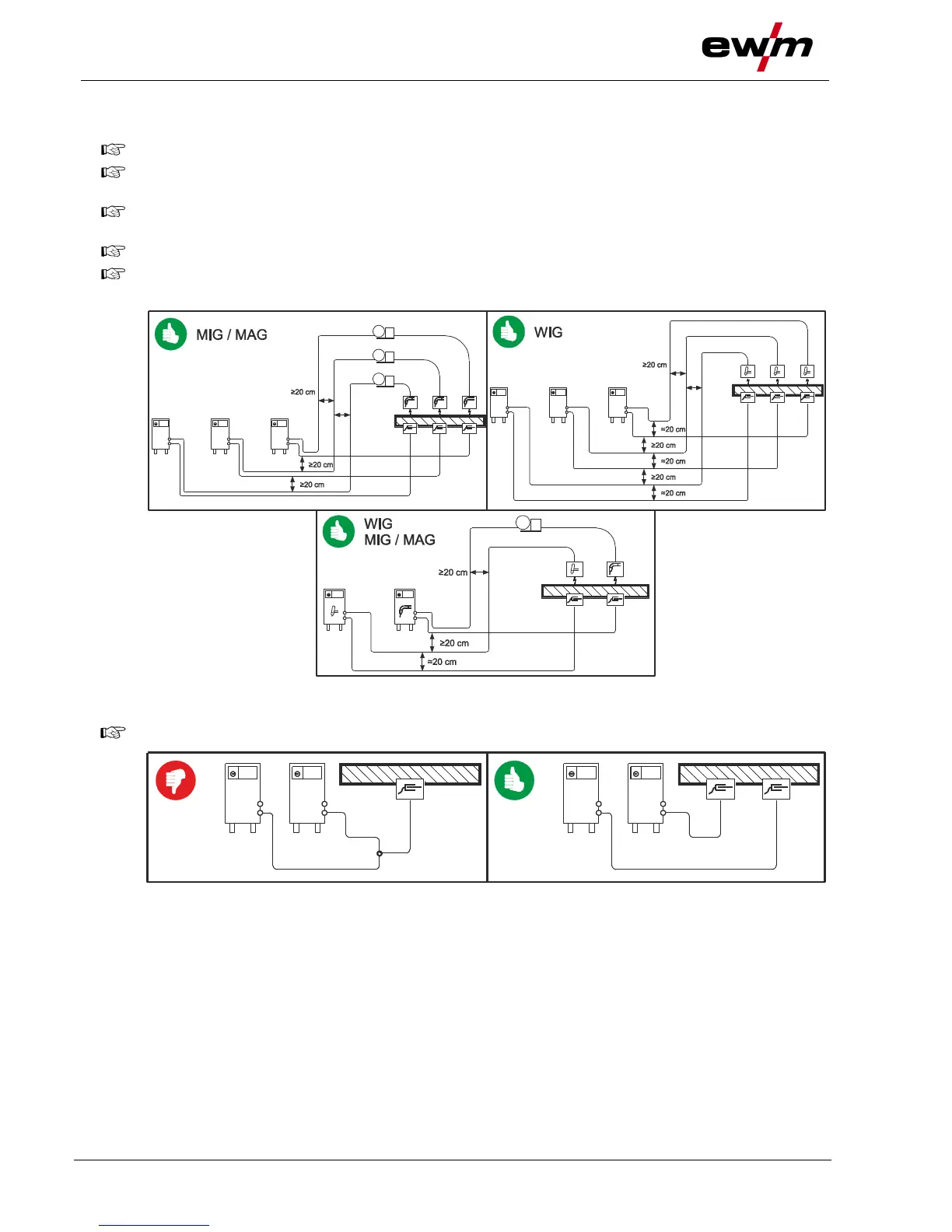 Lay the workpiece lead and hose package of power sources without HF igniter (MIG/MAG) for as