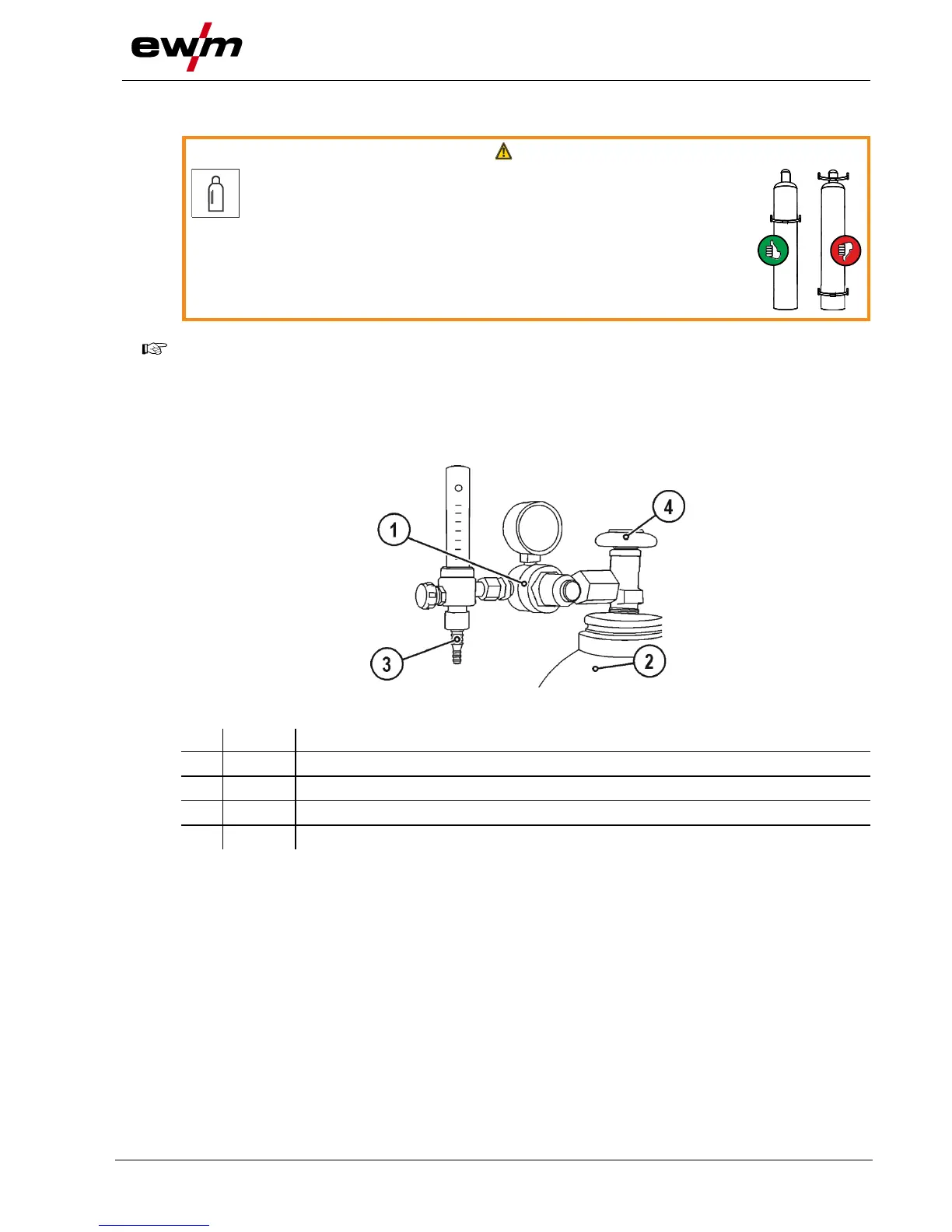• Before connecting the pressure regulator to the gas cylinder, open the cylinder valve briefly to blow
