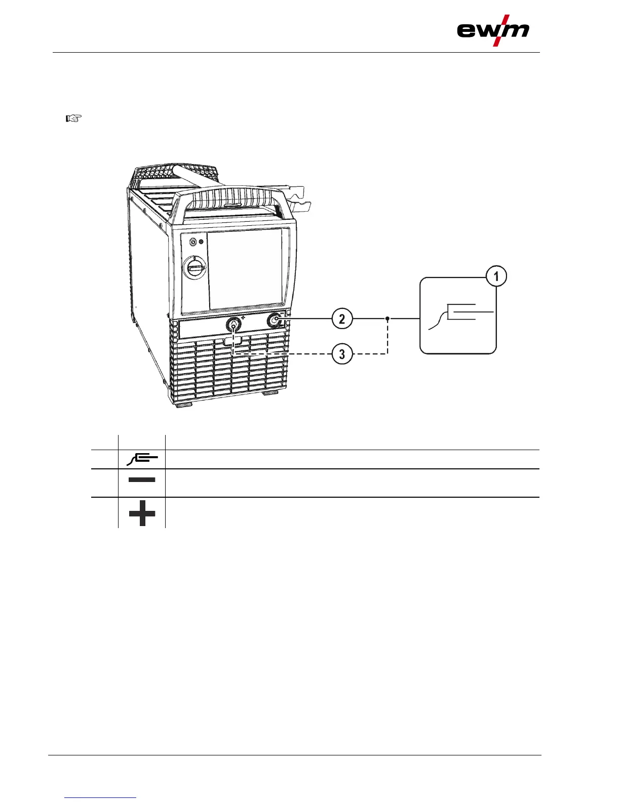 workpiece lead should be connected to the "+" welding current socket. Observe the information