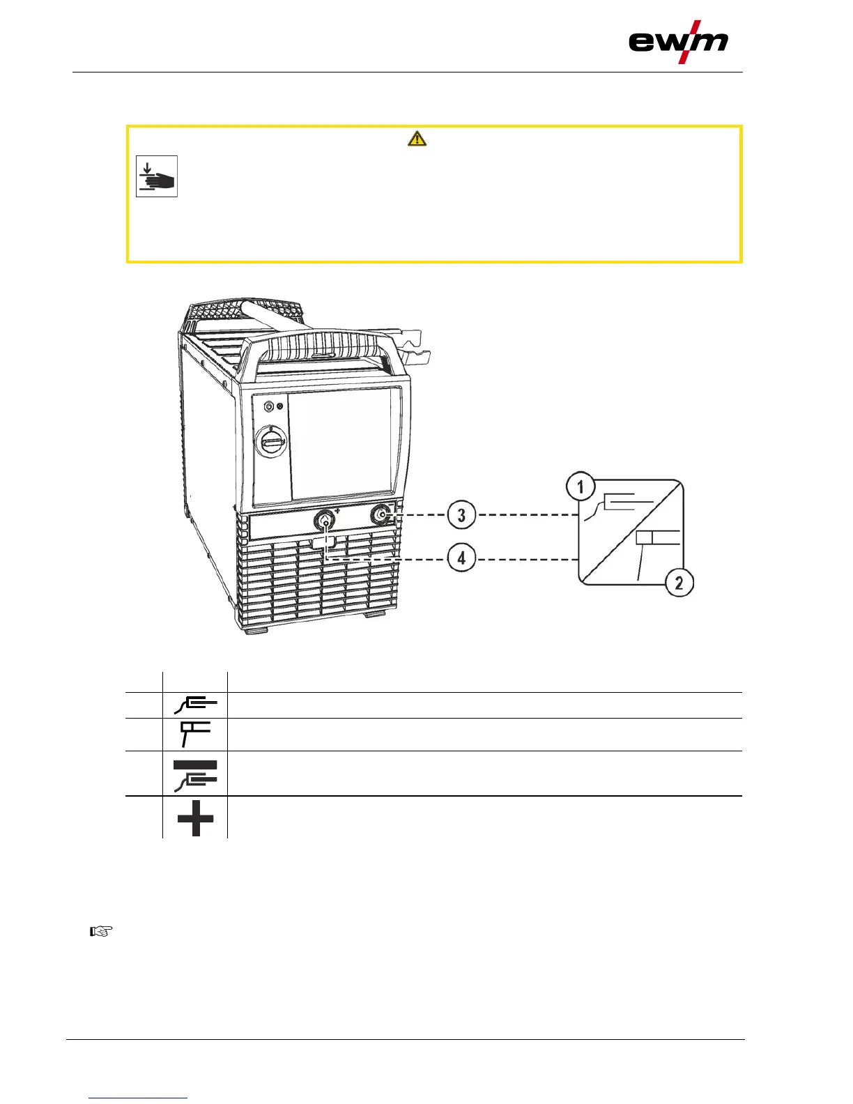 • Insert cable plug of the electrode holder into either the "+" or "-" welding current connection socket and