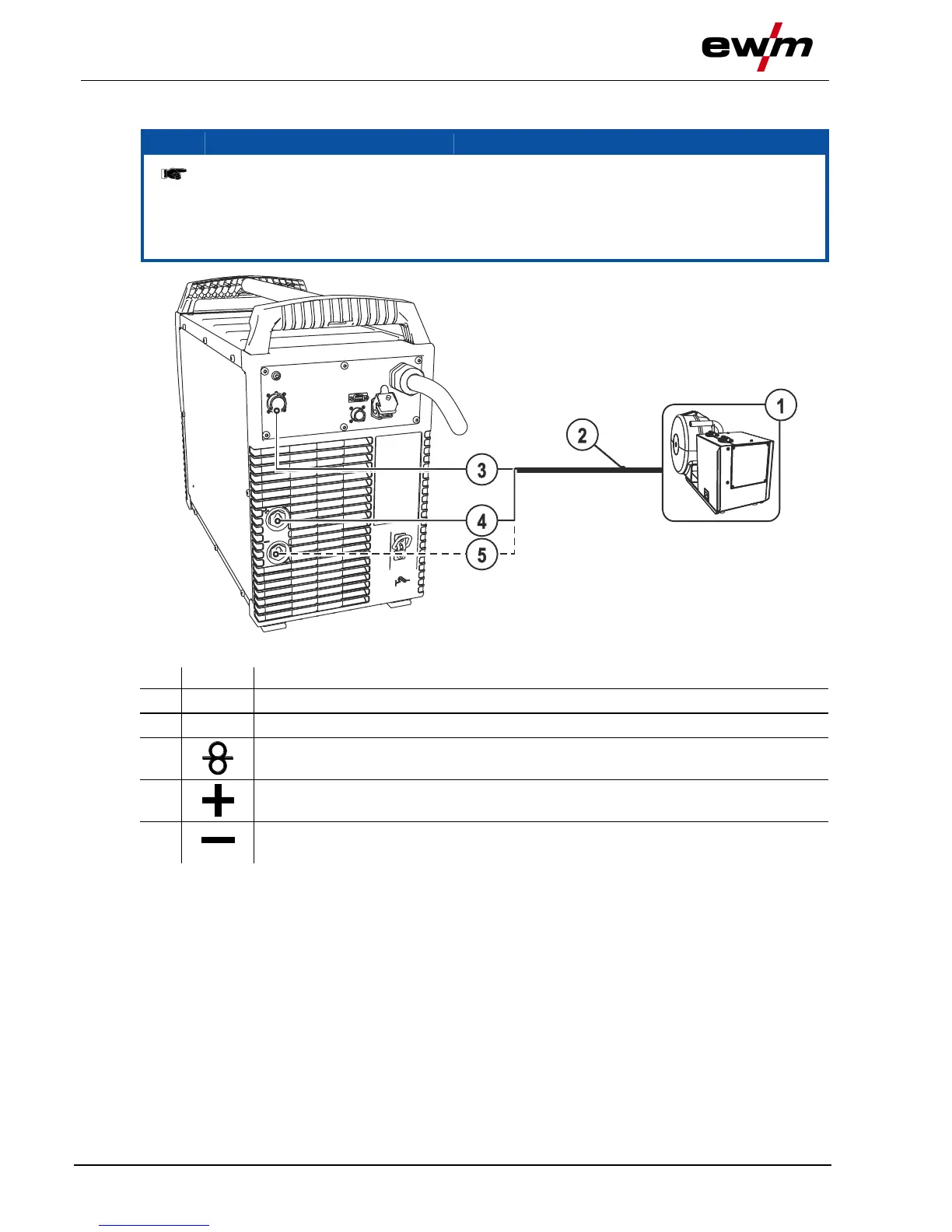 • Insert the welding current cable plug into the relevant welding current connection socket and lock by