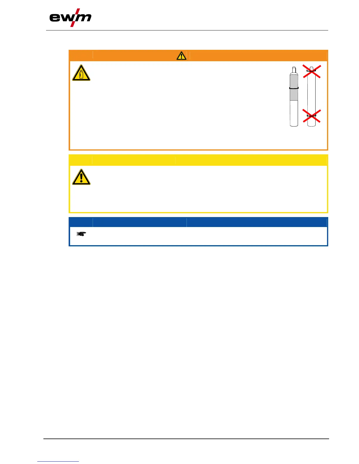 • The fastening elements must tightly enclose the shielding gas cylinder!