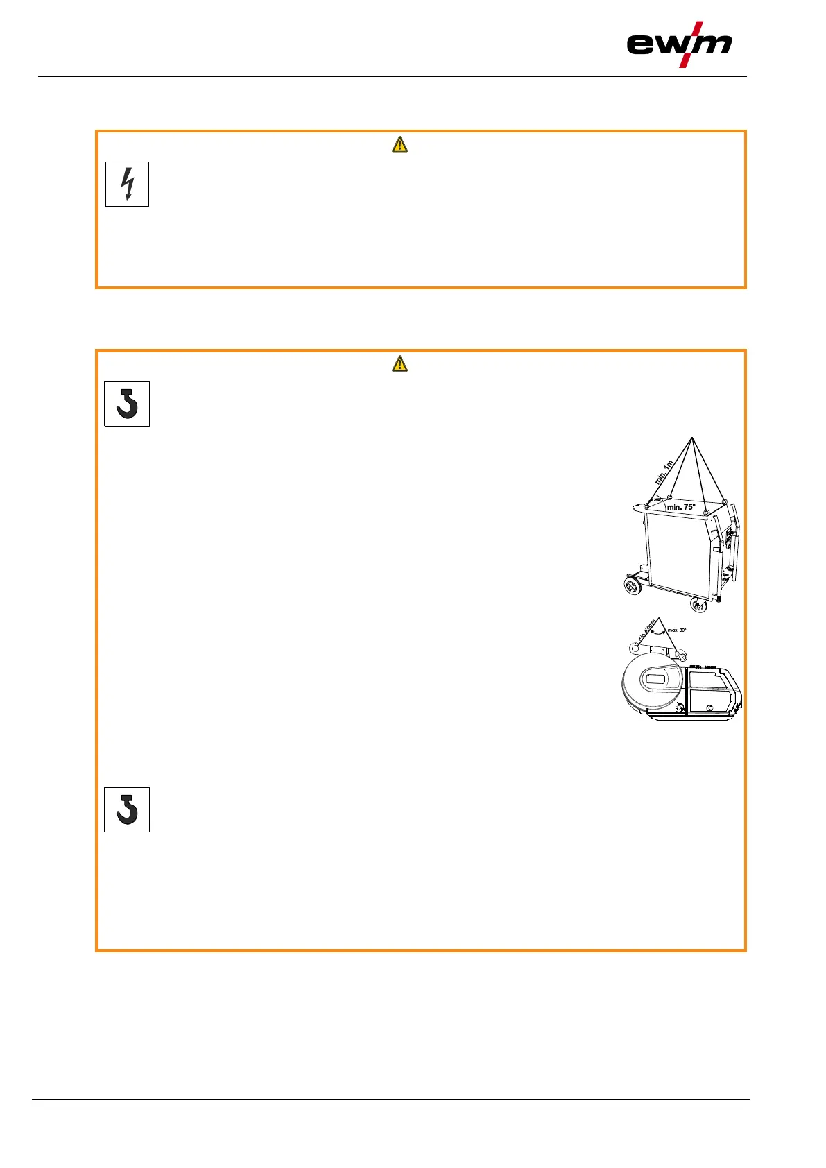 • For machines with lifting eyes: always lift all lifting eyes simultaneously!