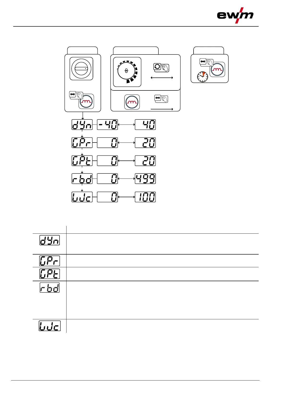 ignition) or the wire electrode sticks to the contact tip. If too low a value is set, the wire