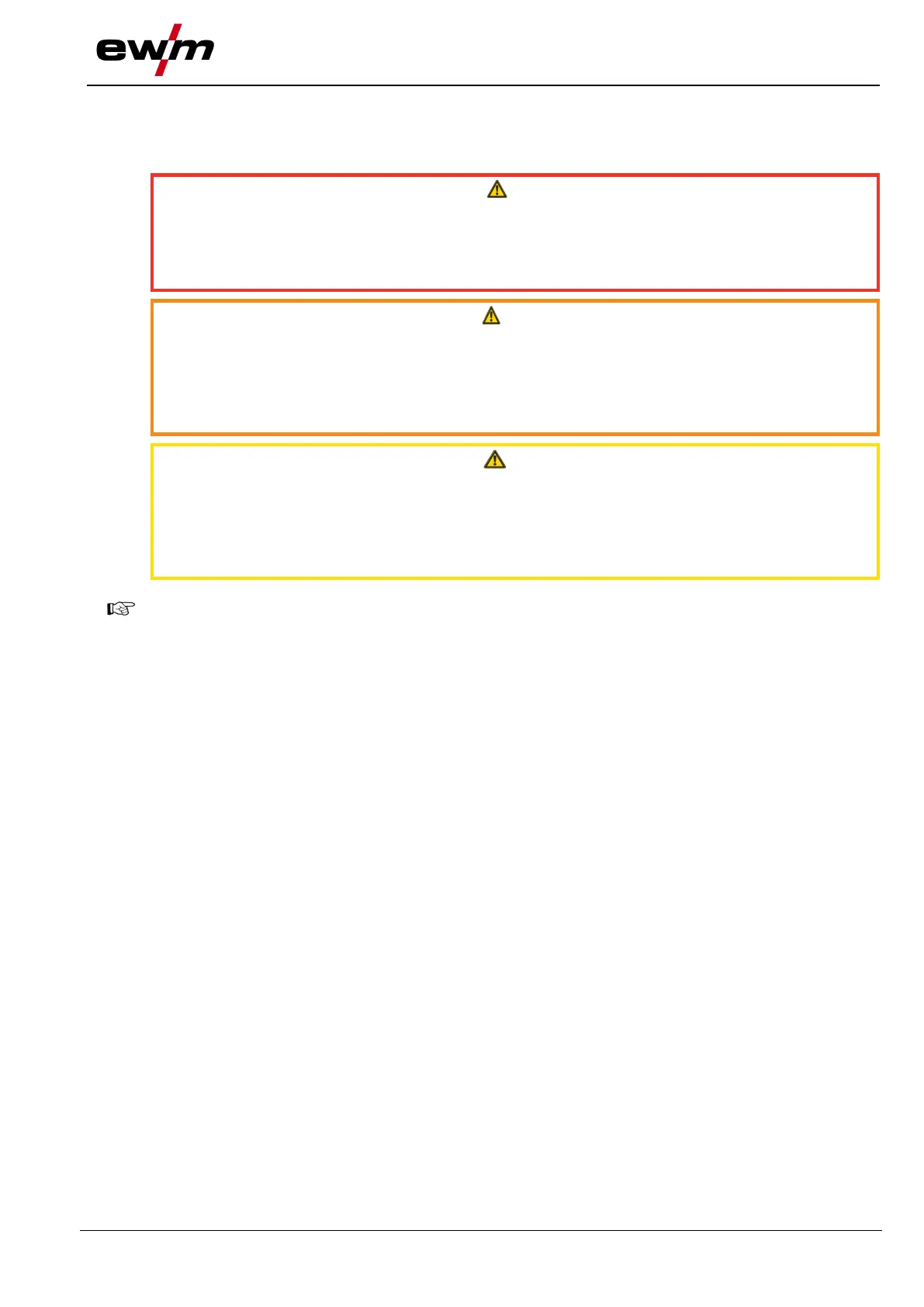 • Safety notes include the "WARNING" keyword in the heading with a general warning