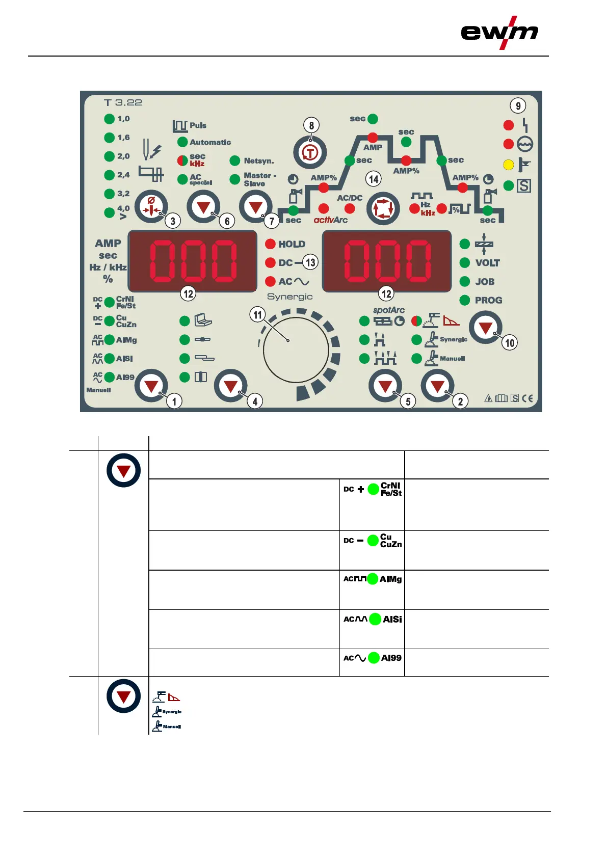 MMA welding, lights up in green / arcforce setting, lights up in red