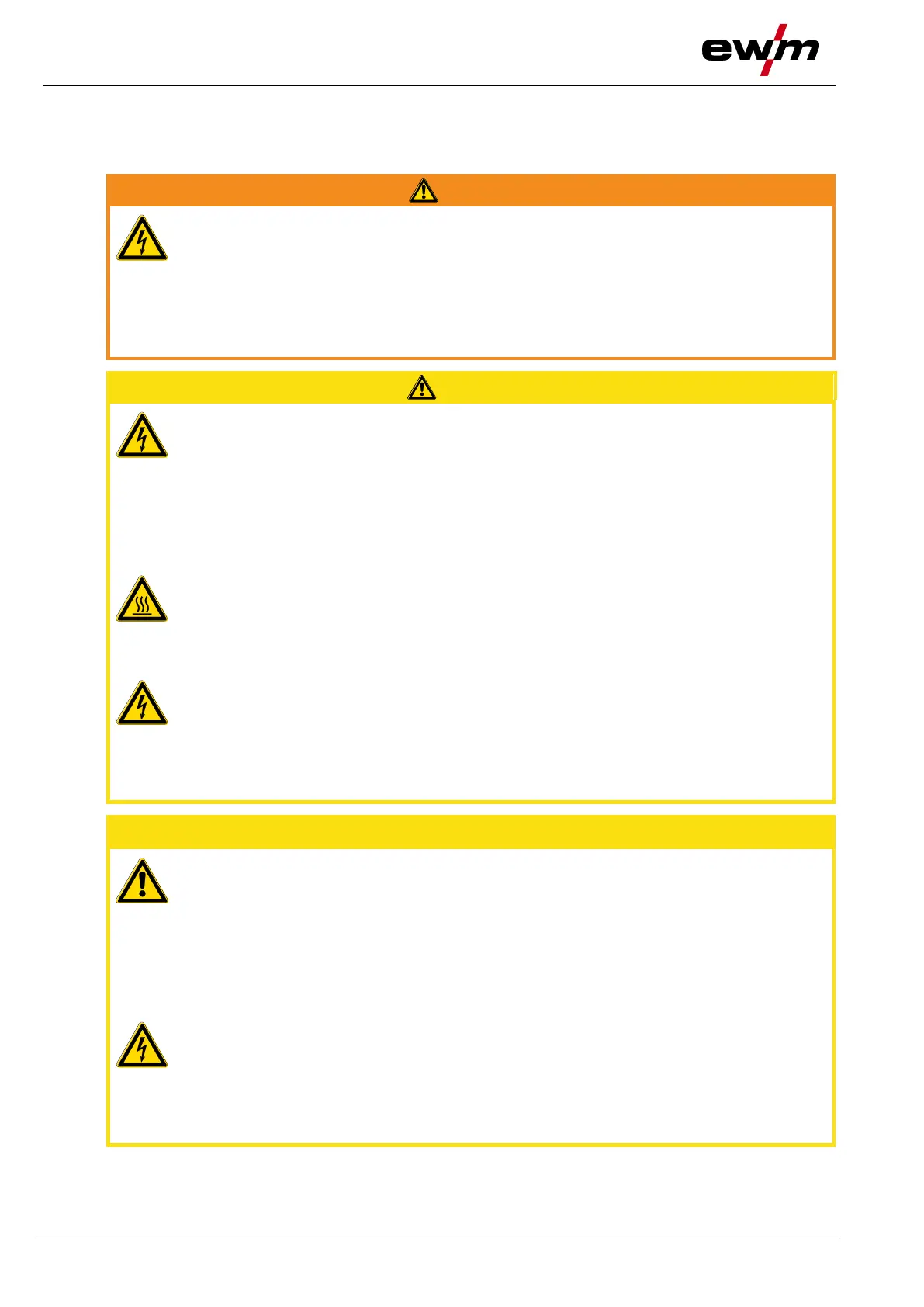 Contact with live parts, e.g. welding current sockets, is potentially fatal!