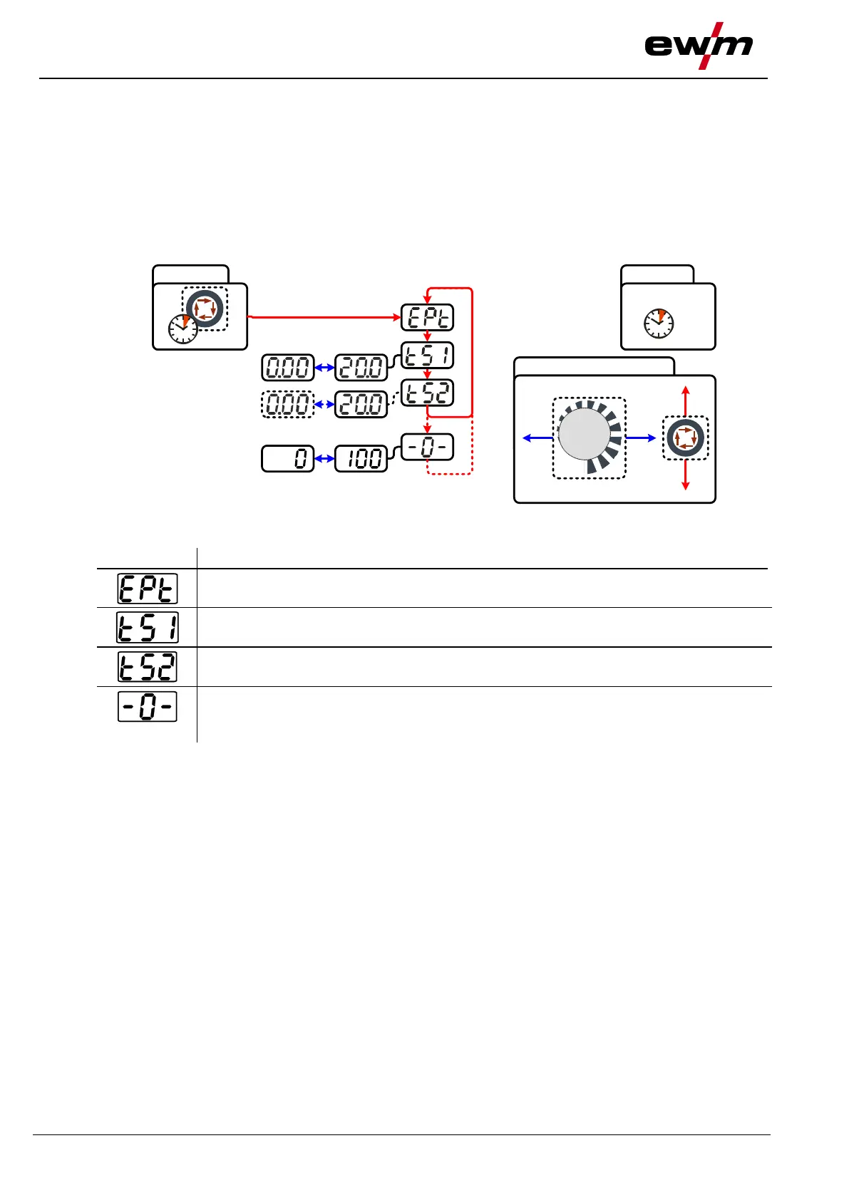 • Set or change the parameters by turning the "welding parameter setting" rotary dial.