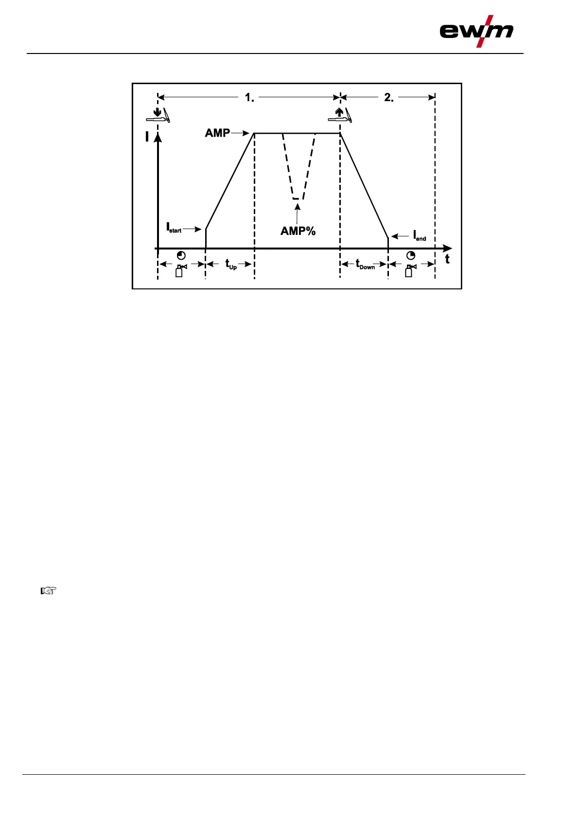• The welding current increases with the adjusted up-slope time to the main current AMP.