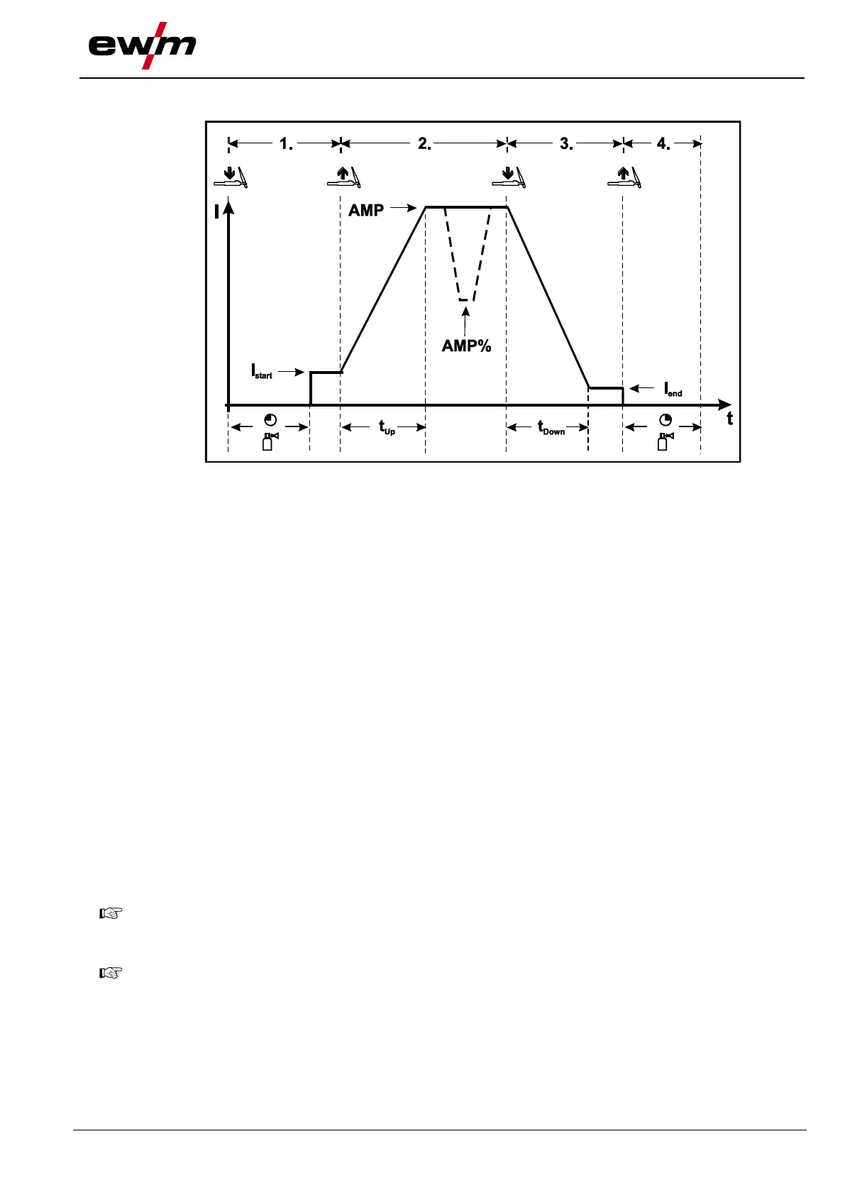 • The welding current increases with the set up-slope time to the main current AMP.