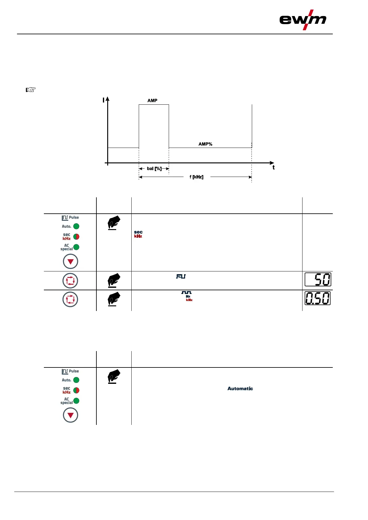 adjusted from 50 Hz to 15 kHz and the pulse balance from 1-99 %.