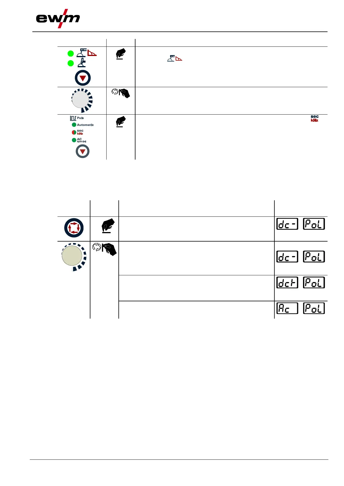 For example, when welding with different electrode types for which different polarities are stipulated by