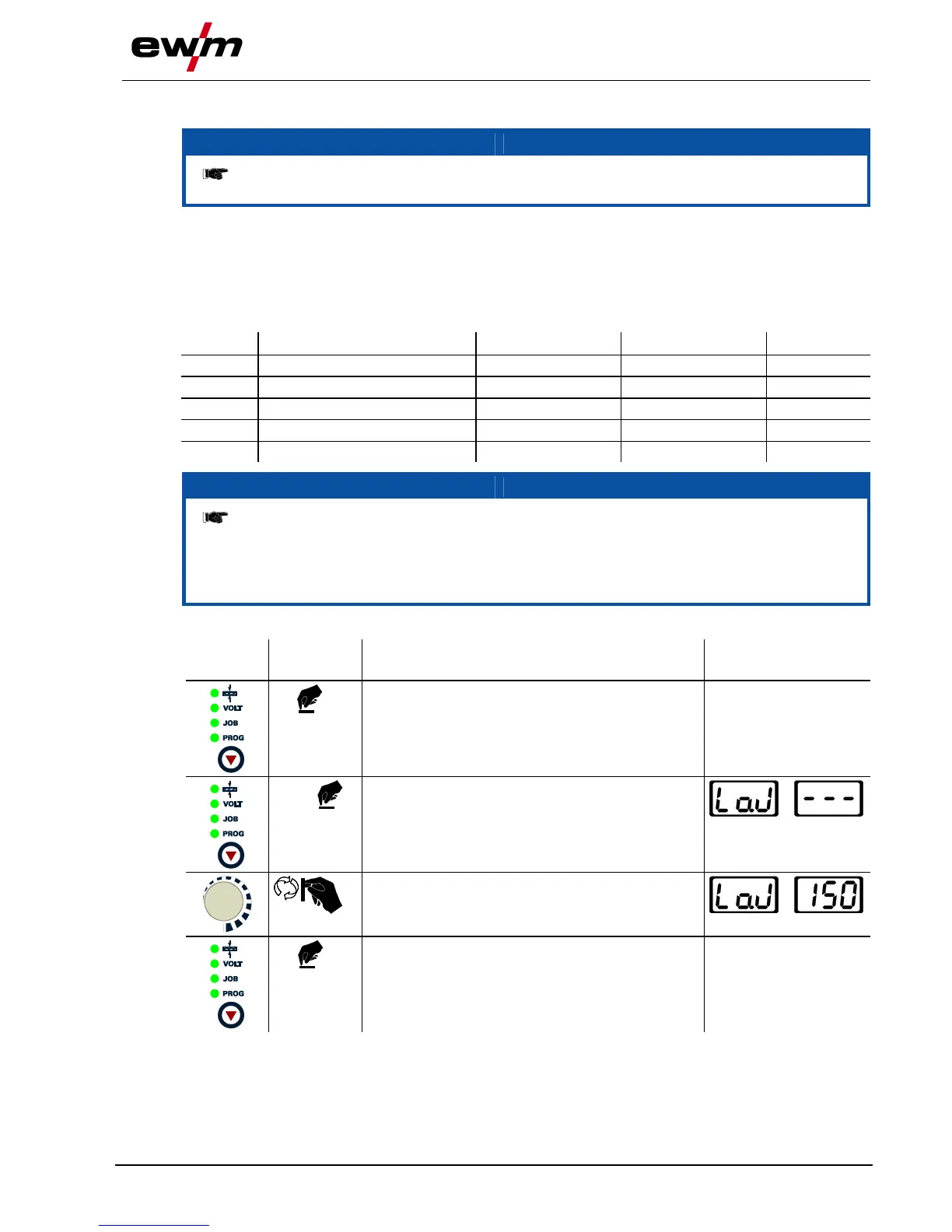 JOB number. Selecting this JOB number means that all settings required for the welding task are