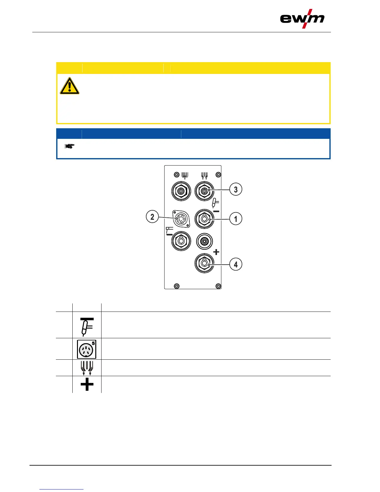 Prepare welding torch according to the welding task in hand (see operating instructions