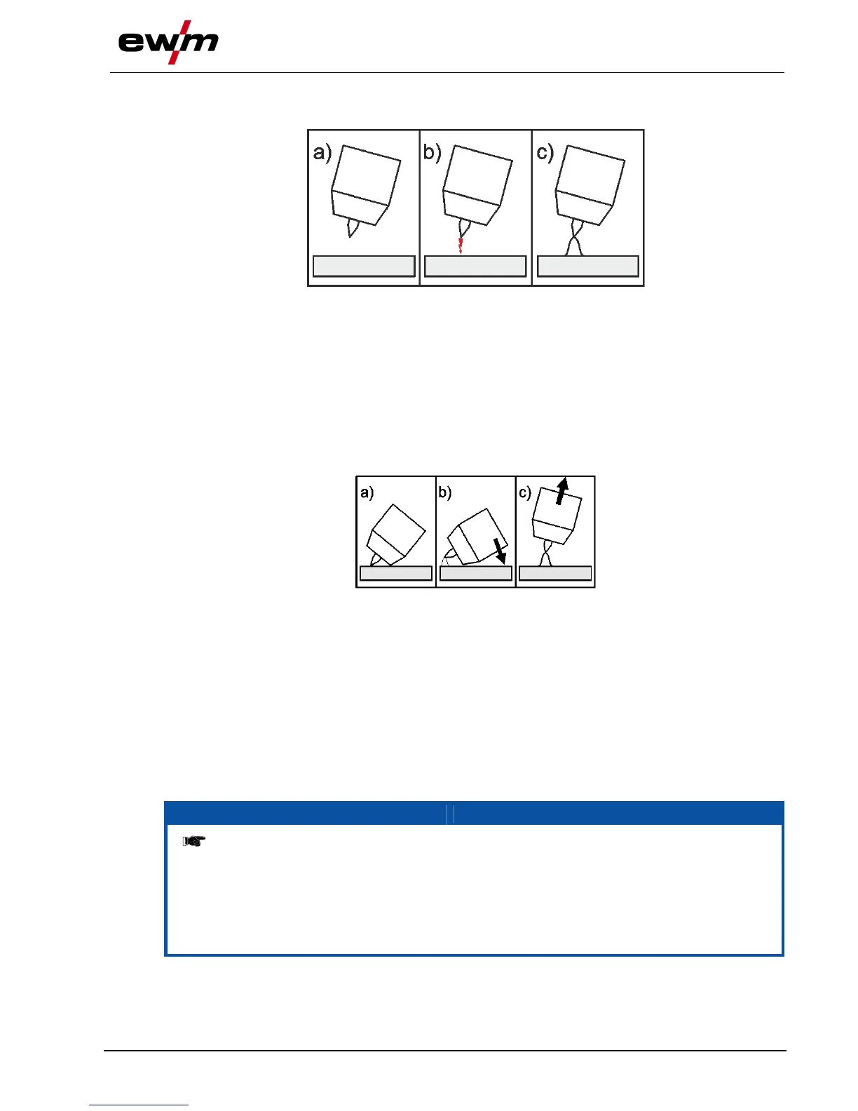 a) Position the welding torch in welding position over the workpiece (distance between the electrode tip