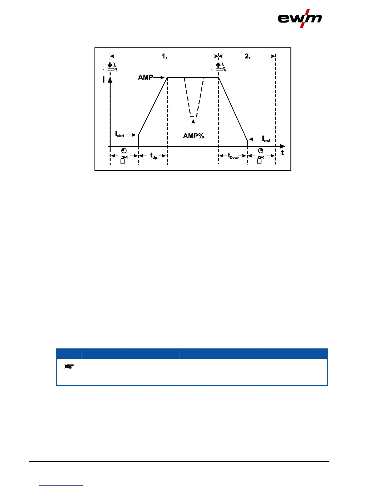 • The welding current increases with the adjusted up-slope time to the main current AMP.