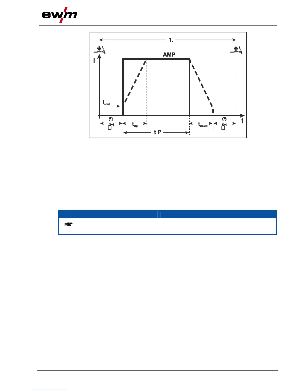 • The welding current increases in the adjusted up-slope time to the main current AMP.