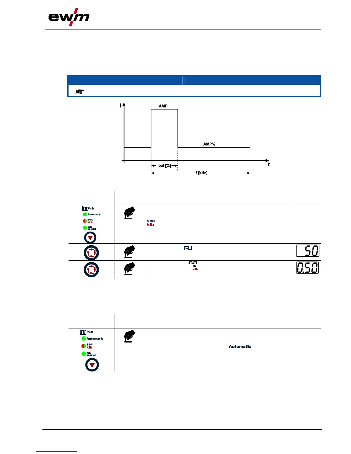 adjusted from 50 Hz to 15 kHz and the pulse balance from 1-99 %.