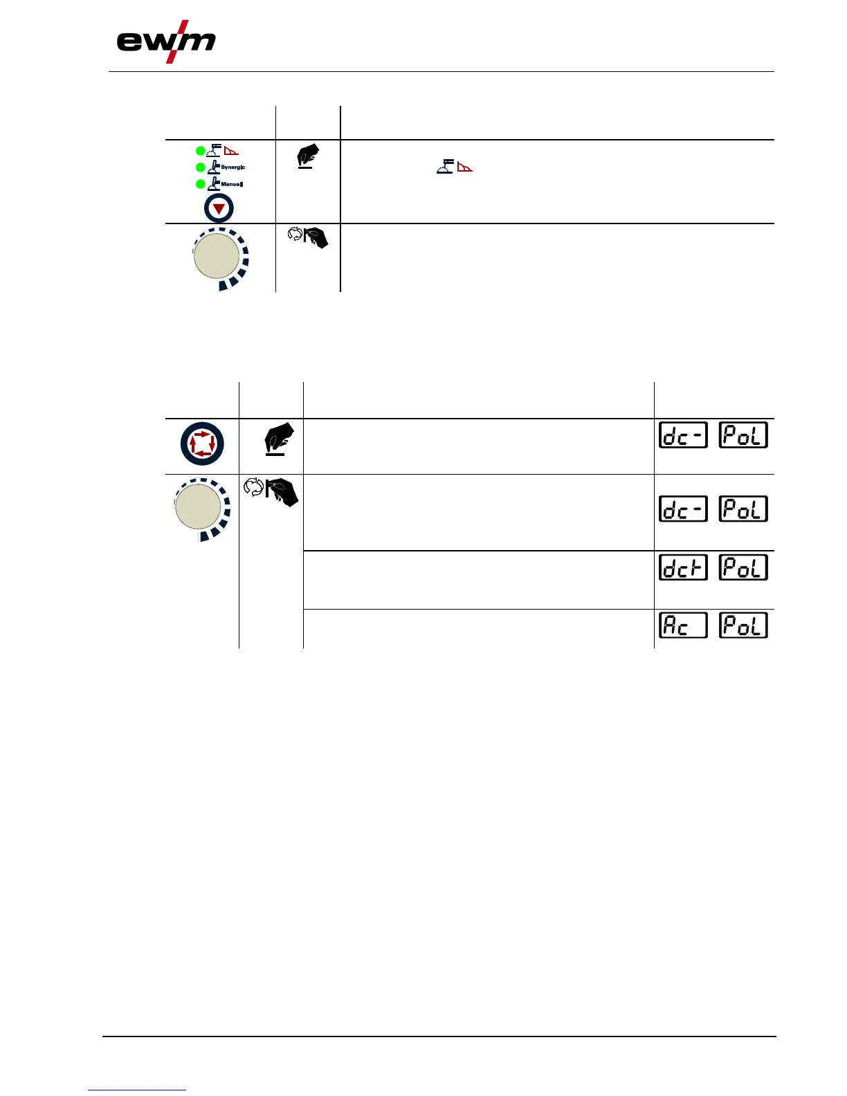 For example, when welding with different electrode types for which different polarities are stipulated by