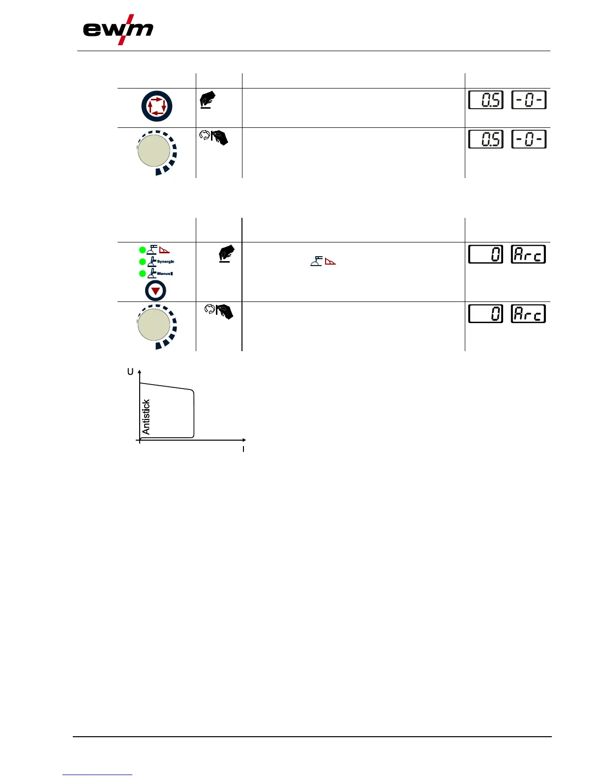 Shortly before the electrode threatens to stick, the arcforcing device sets an increased current designed