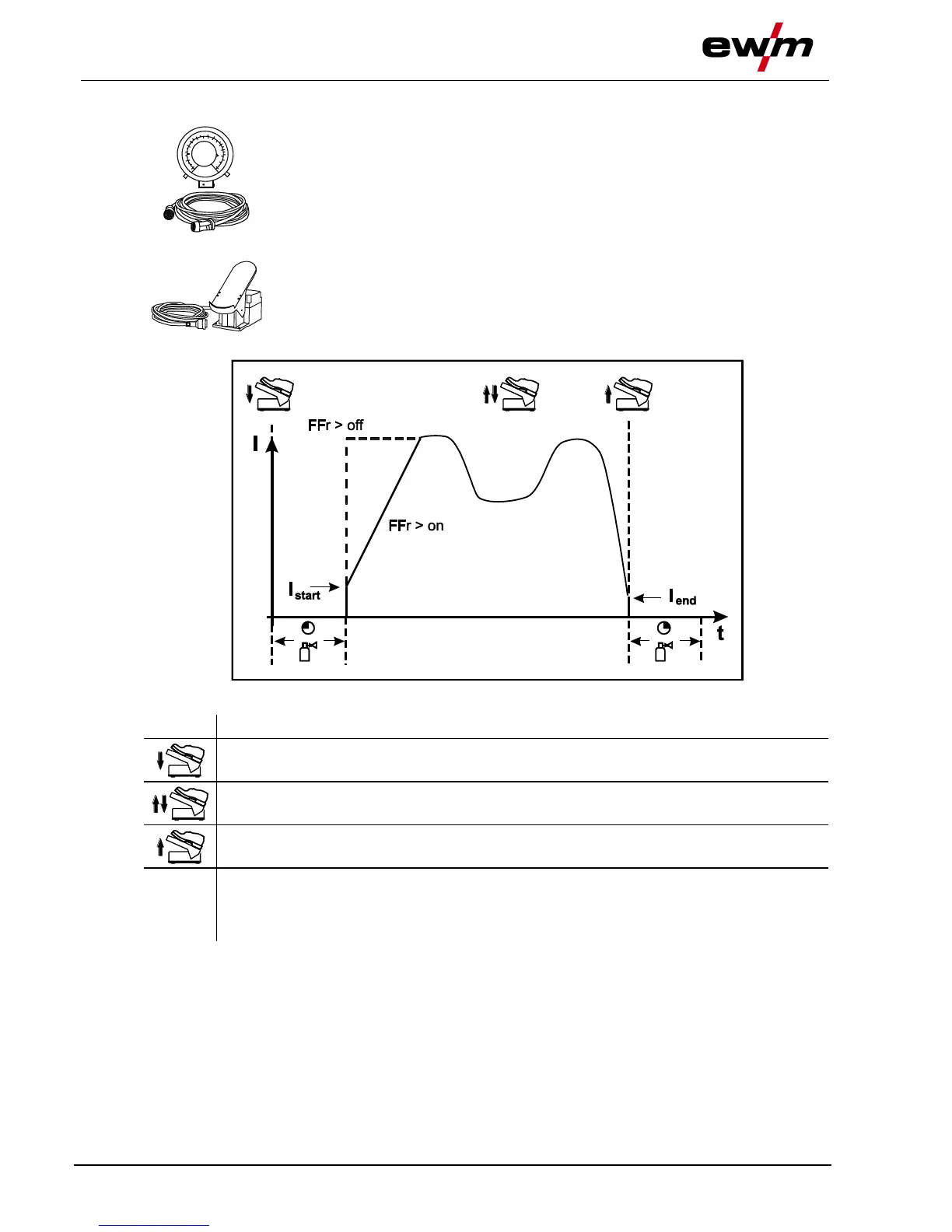 Operate foot-operated remote control (set welding current according to application)