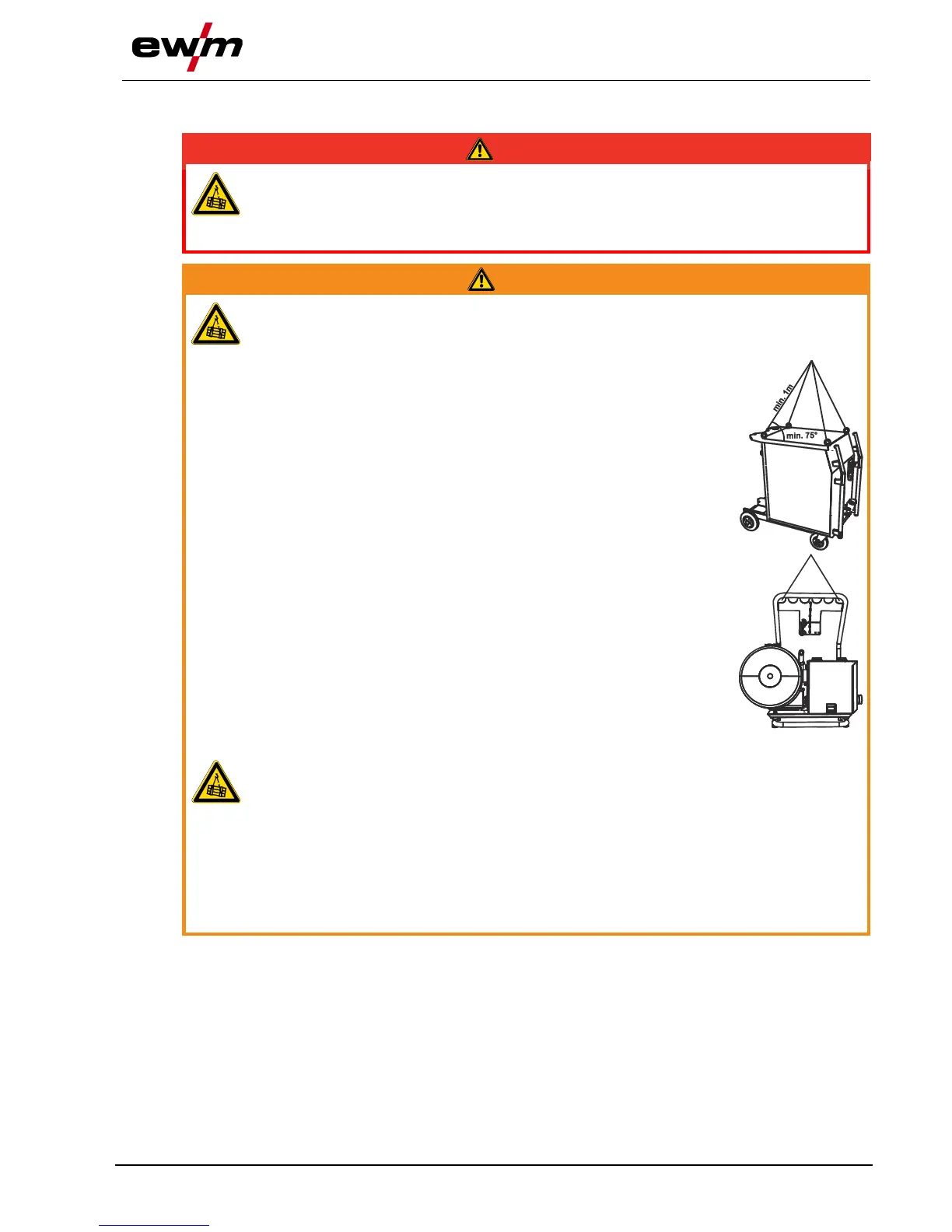 • For machines with lifting eyes: always lift all lifting eyes simultaneously!