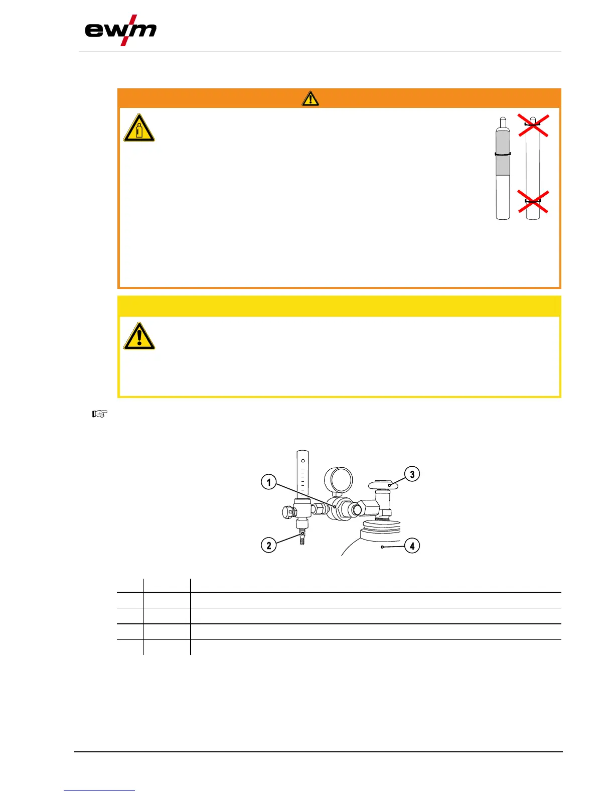 • Do not attach any element to the shielding gas cylinder valve!