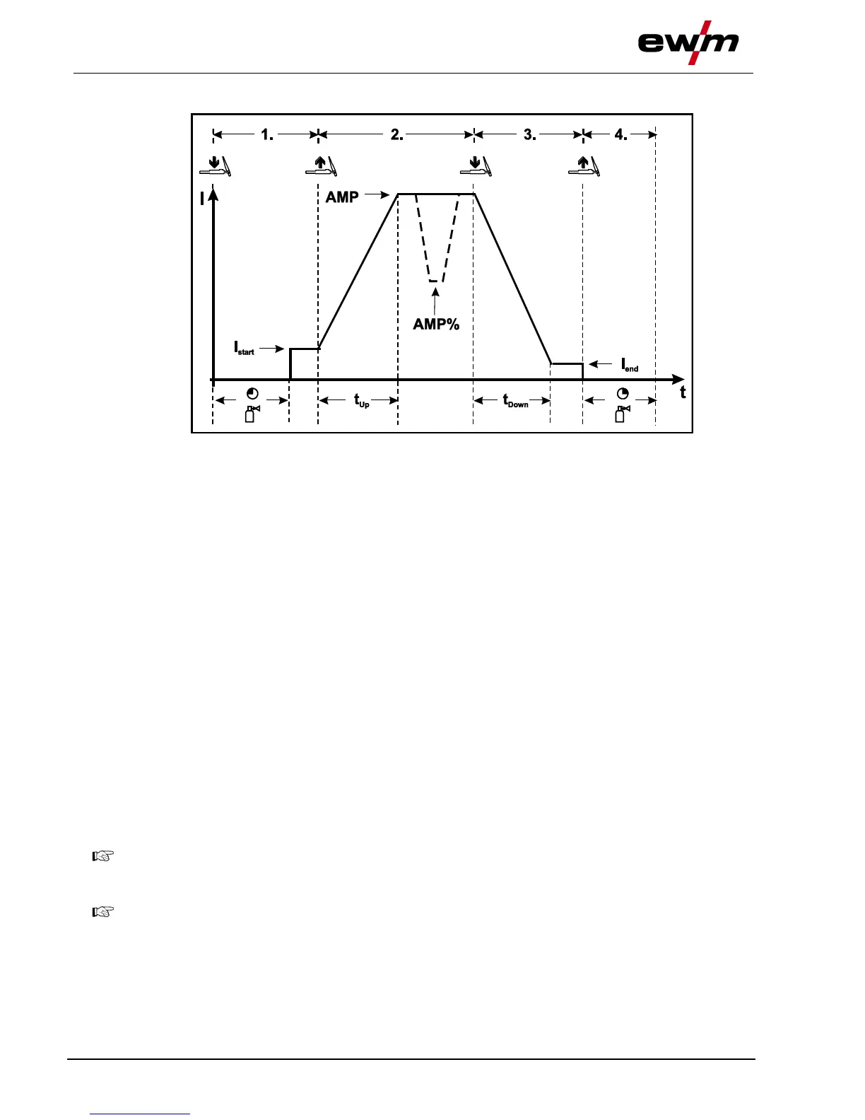 • The welding current increases with the set up-slope time to the main current AMP.