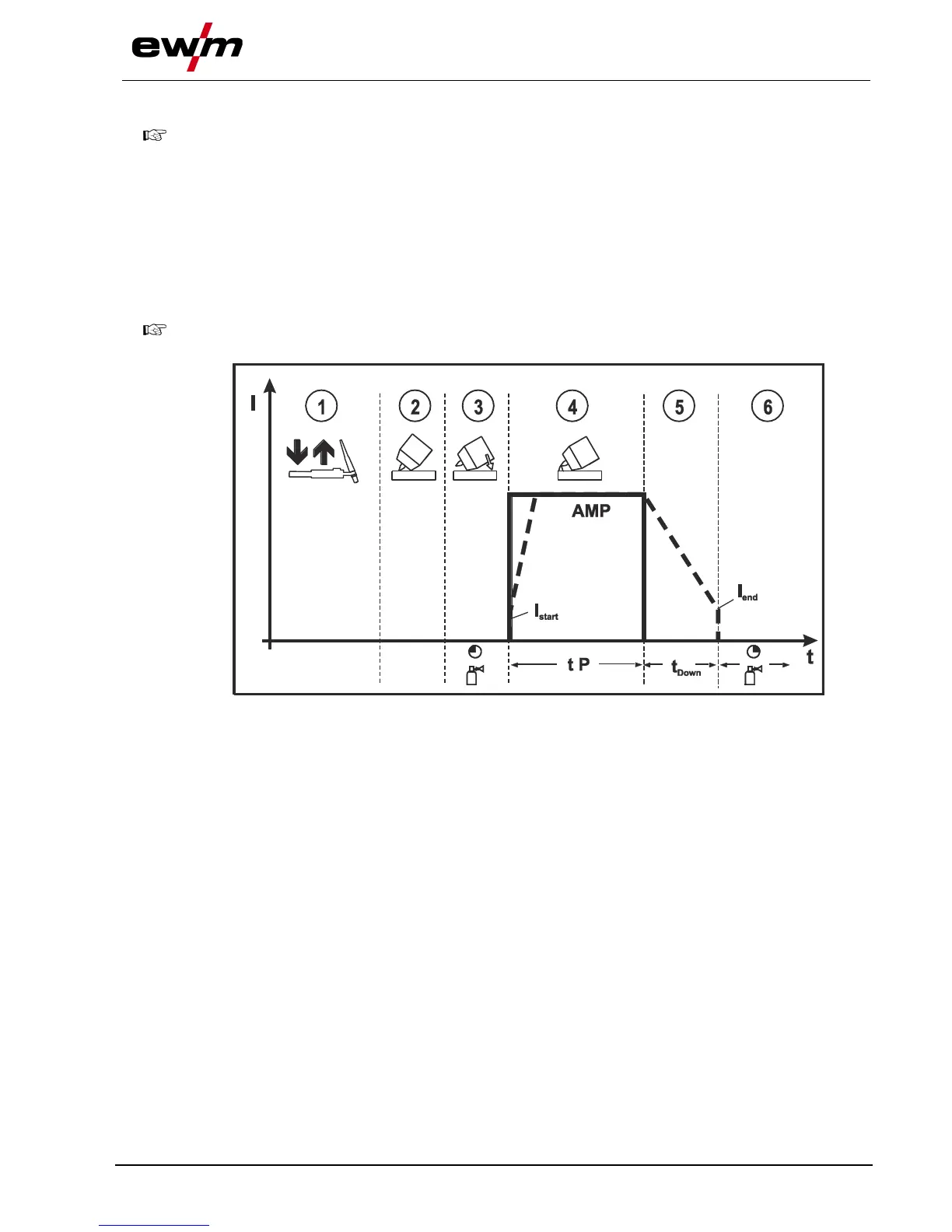 The welding process is activated by pressing the torch trigger once. The following arc ignitions are