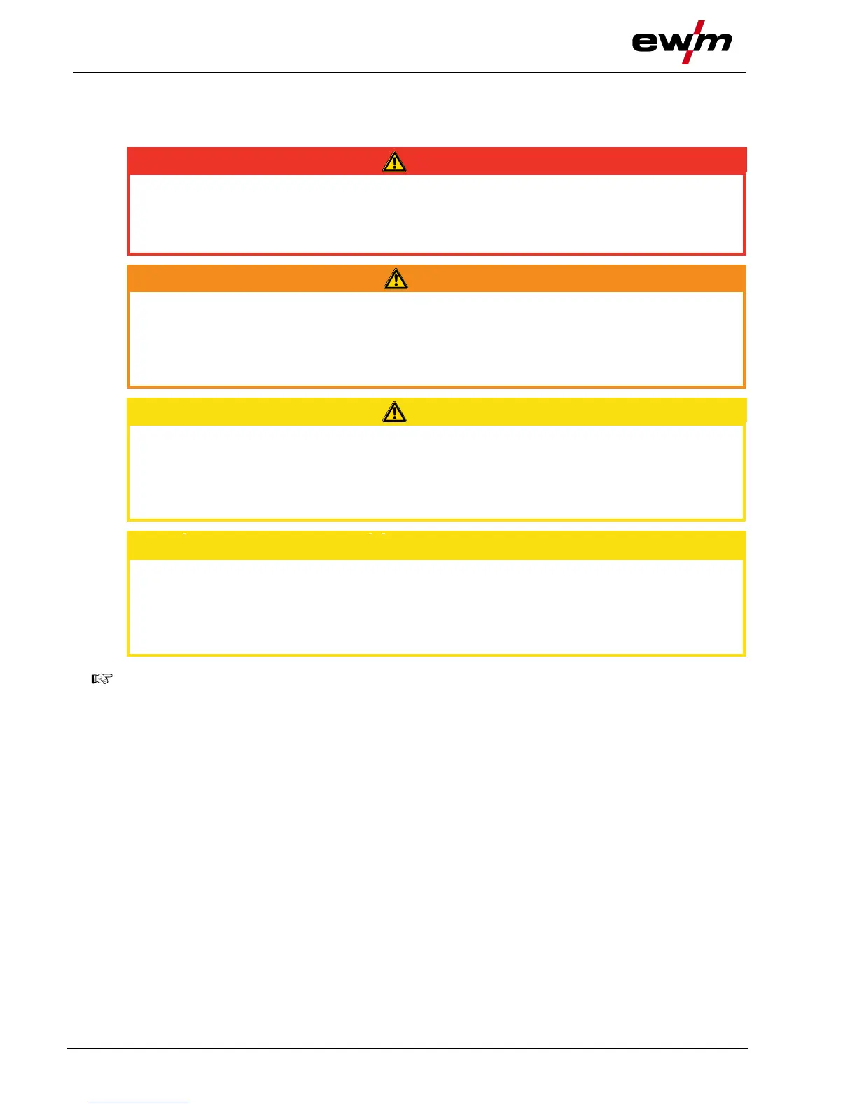 • Safety notes include the "WARNING" keyword in the heading with a general warning