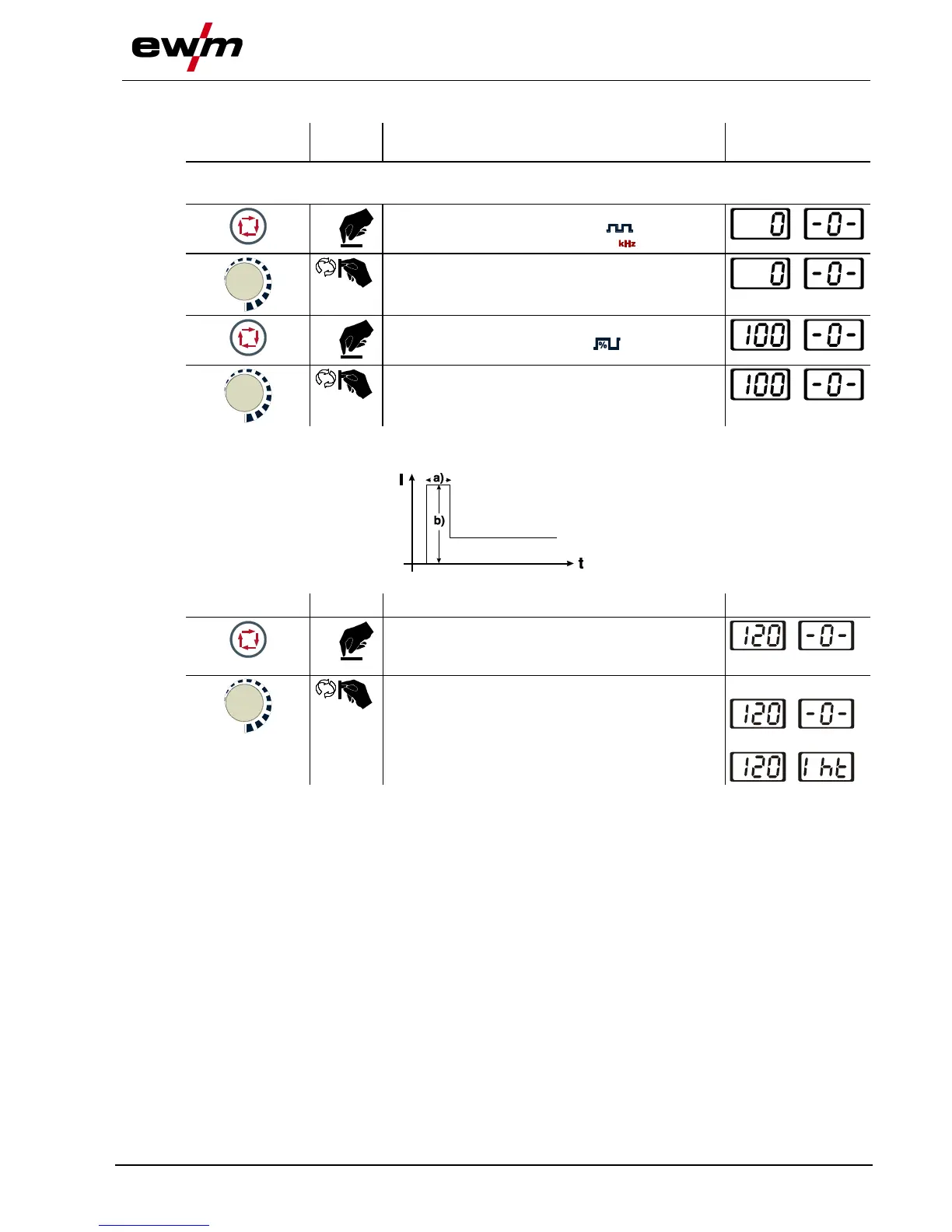 Switch on welding current polarity "AC" - See 5.14.3 Welding current polarity reversal (polarity reversal)