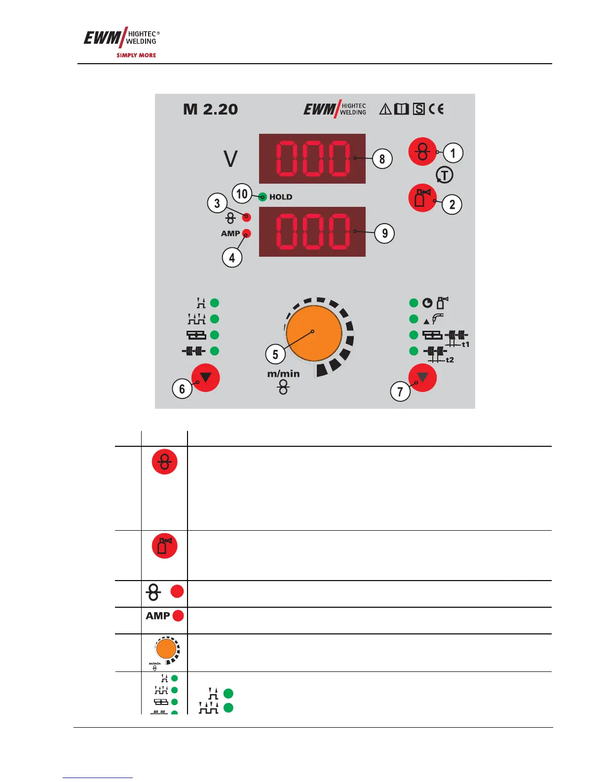 Pressing the key button once causes shielding gas to flow for approx. 25 seconds. The