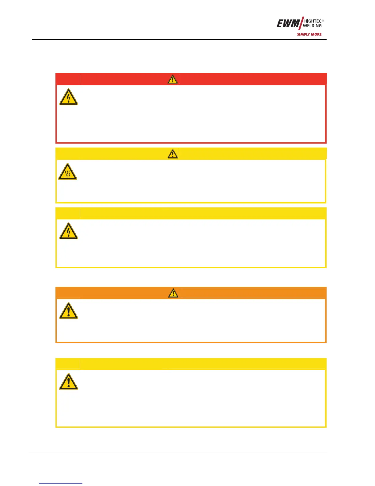 Contact with live parts, e.g. welding current sockets, is potentially fatal!